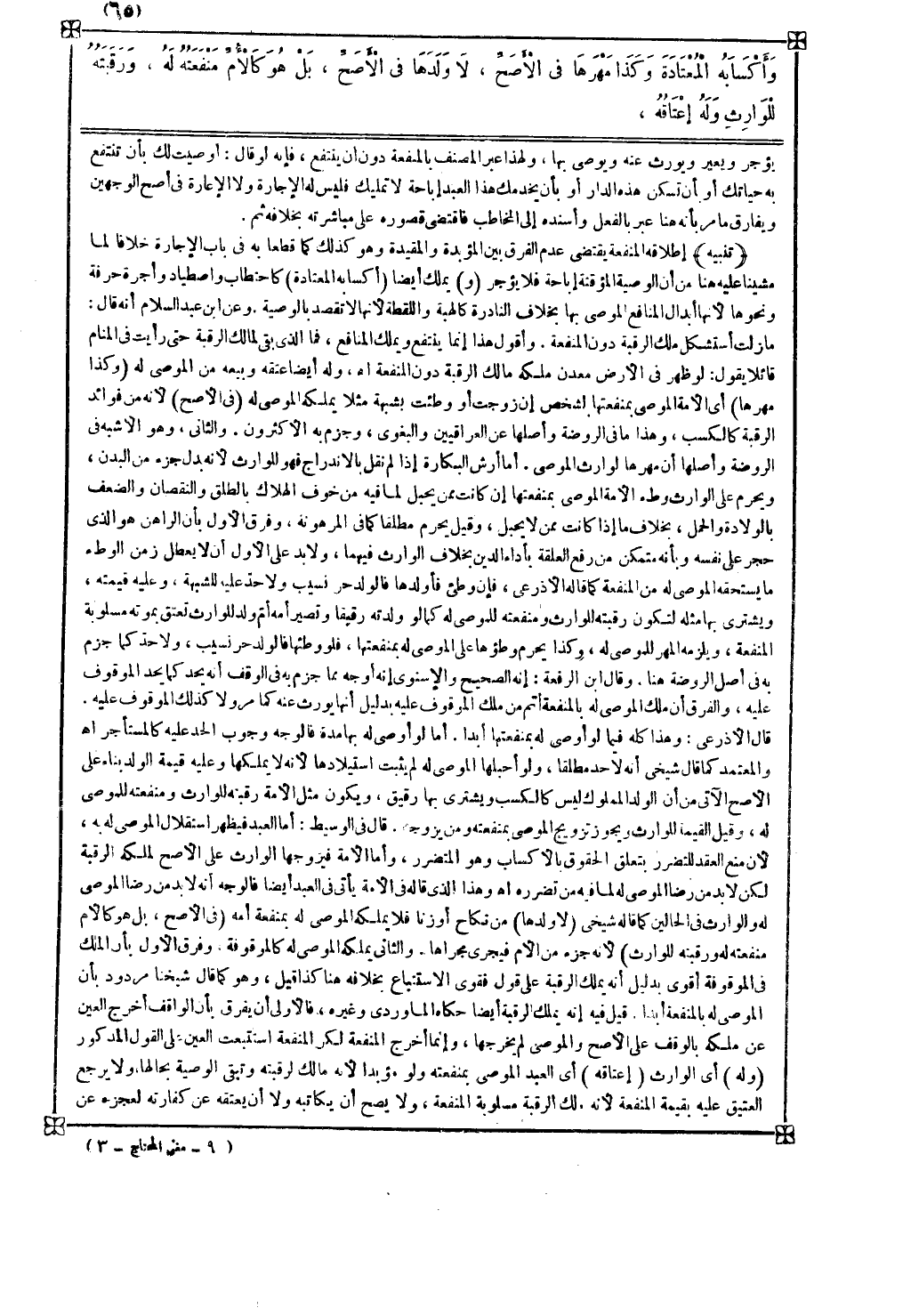 تنبيه إطلاقه المنفعة يقتضي عدم الفرق بين المؤبدة والمقيدة وهو كذلك كما قطعا به في باب الإجارة خلافا لما مشينا عليه هنا من أن الوصية المؤقتة إباحة فلا يؤجر