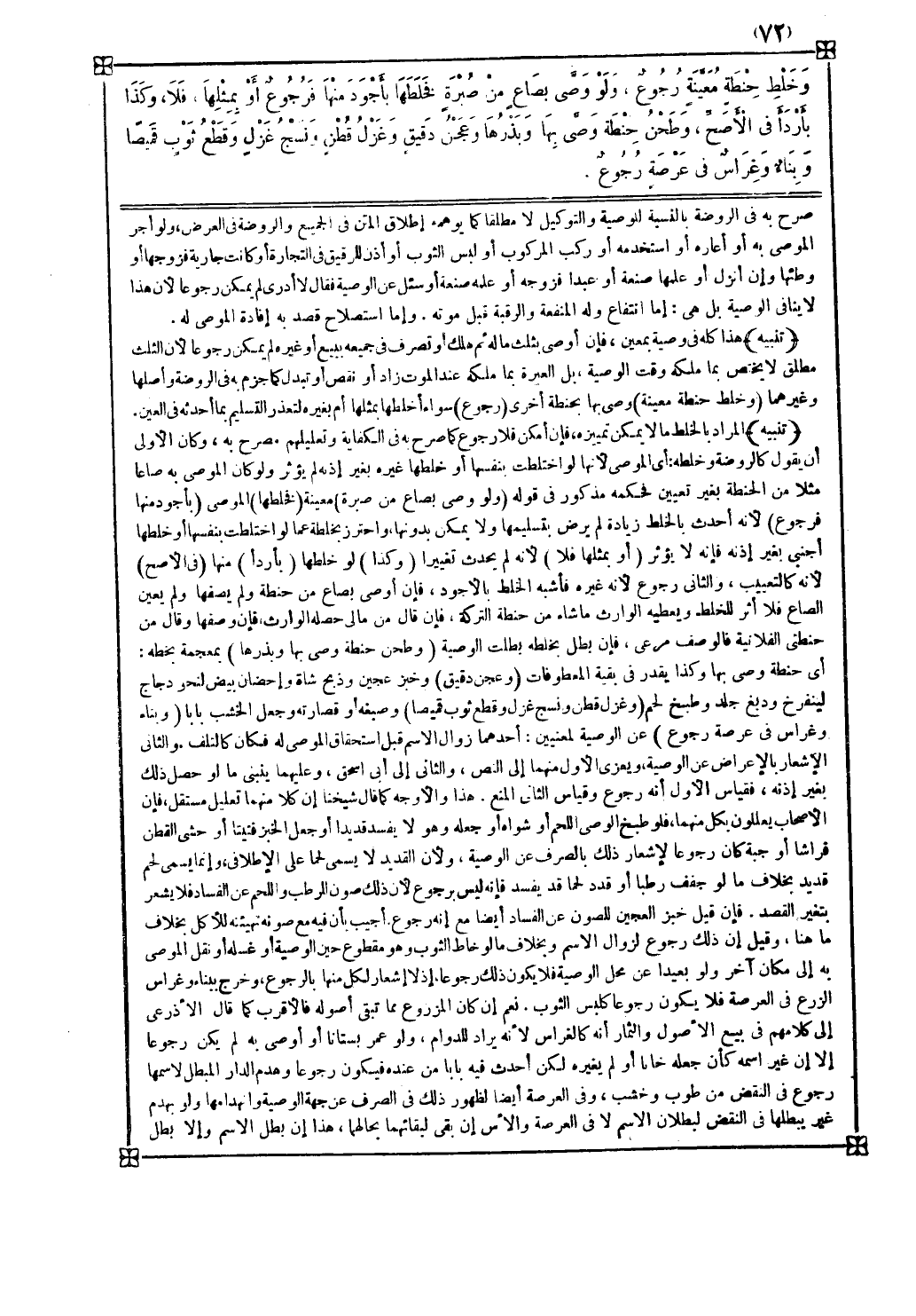 هذا والأوجه كما قال شيخنا أن كلا منهما تعليل مستقل فإن الأصحاب يعللون بكل منهما فلو طبخ الوصي اللحم أو شواه أو جعله وهو لا يفسد قديدا أو جعل الخبز فتيتا أو حشا القطن فراشا أو جبة كان رجوعا لإشعار ذلك بالصرف عن الوصية ولأن القديد لا يسمى لحما على الإطلاق وإنما يسمى لحم قديد بخلاف ما لو جفف رطبا أو قدد لحما قد يفسد فإنه ليس برجوع لأن ذلك صون للرطب واللحم عن الفساد فلا يشعر بتغير القصد