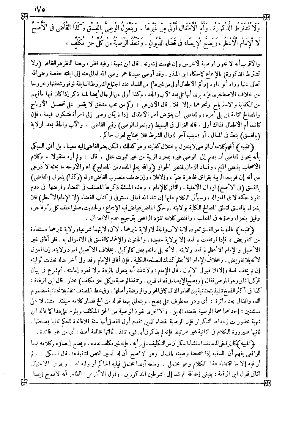 تنبيه كان ينبغي للمصنف استثناء السكران من التكليف على رأيه فإنه غير مكلف عنده ويصح إيصاؤه