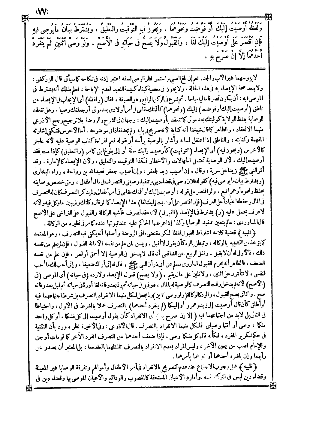 نعم إن بلغ الصبي واستمر نظر الوصي لسفه اعتبر إذنه في نكاحه كما سيأتي قال الزركشي ولا يبعد صحة الإيصاء به في هذه الحالة