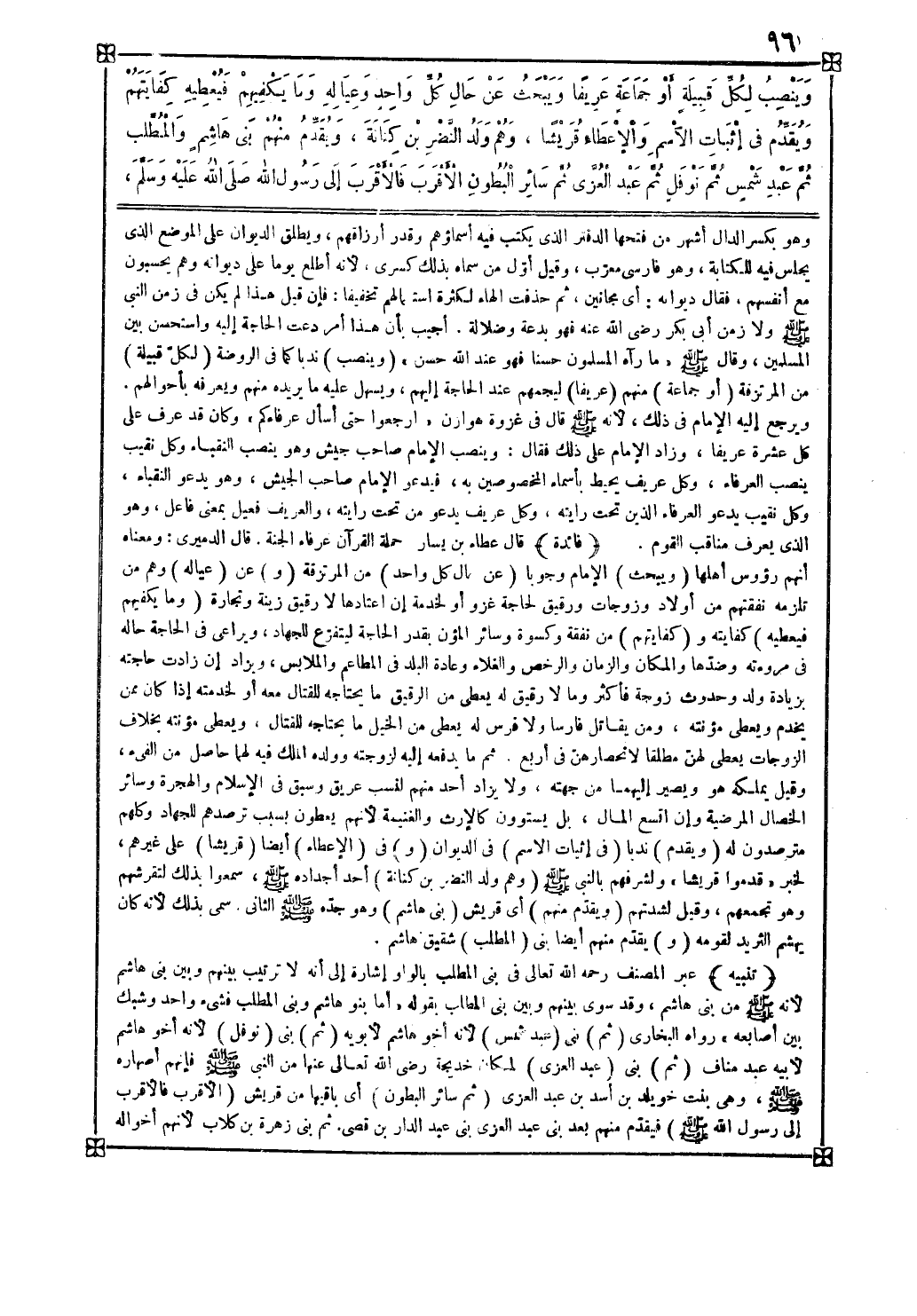 تنبيه عبر المصنف رحمه الله تعالى في بني المطلب بالواو إشارة إلى أنه لا ترتيب بينهم وبين بني هاشم لأنه صلى الله عليه وسلم من بني هاشم وقد سوى بينهم وبين بني المطلب بقوله أما بنو هاشم وبني المطلب فشيء واحد وشبك بين أصابعه رواه البخاري