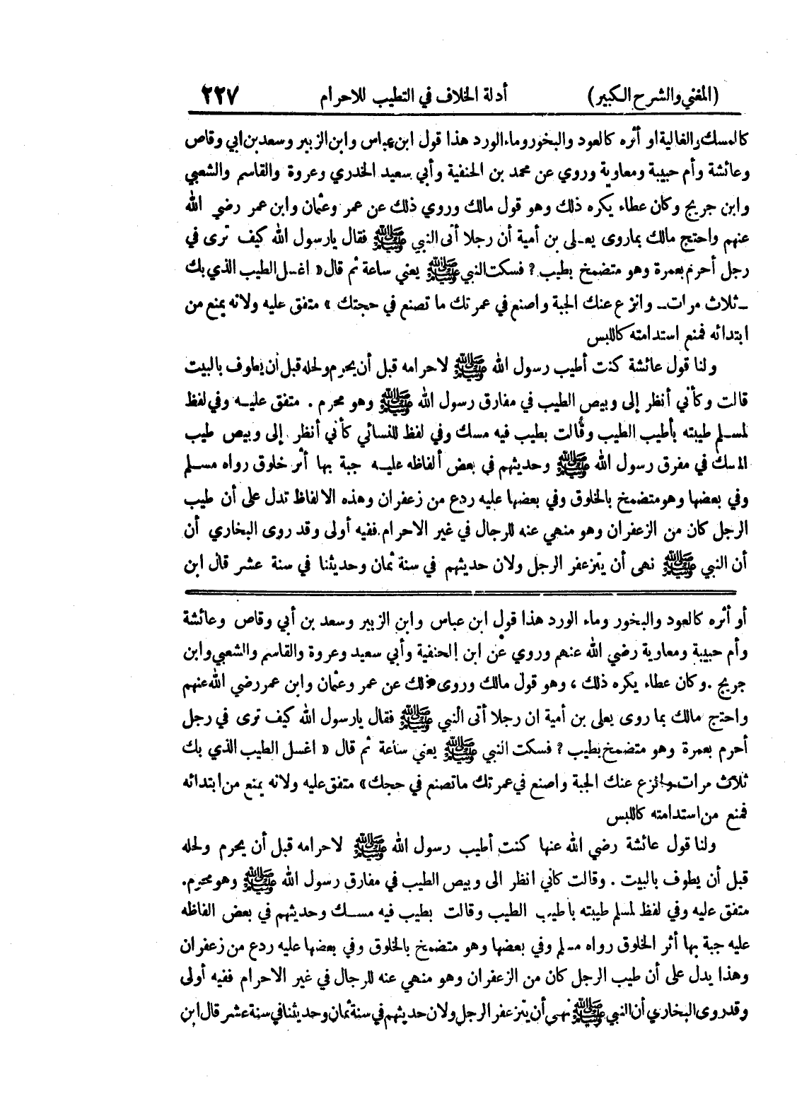 أو أثره كالعود والبخور وماء الورد هذا قول ابن عباس وابن الزبير وسعد بن أبي وقاص وعائشة وأم حبيبة ومعاوية رضي الله عنهم وروي عن ابن الحنفية وأبي سعيد وعروة والقاسم والشعبي وابن جريج.