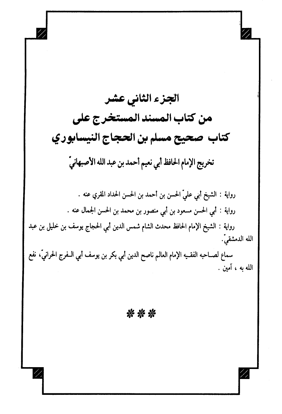 الْجُزْء الثَّانِي عشر من كتاب الْمسند الْمُسْتَخْرج على كتاب صَحِيح مُسلم بن الْحجَّاج النَّيْسَابُورِي