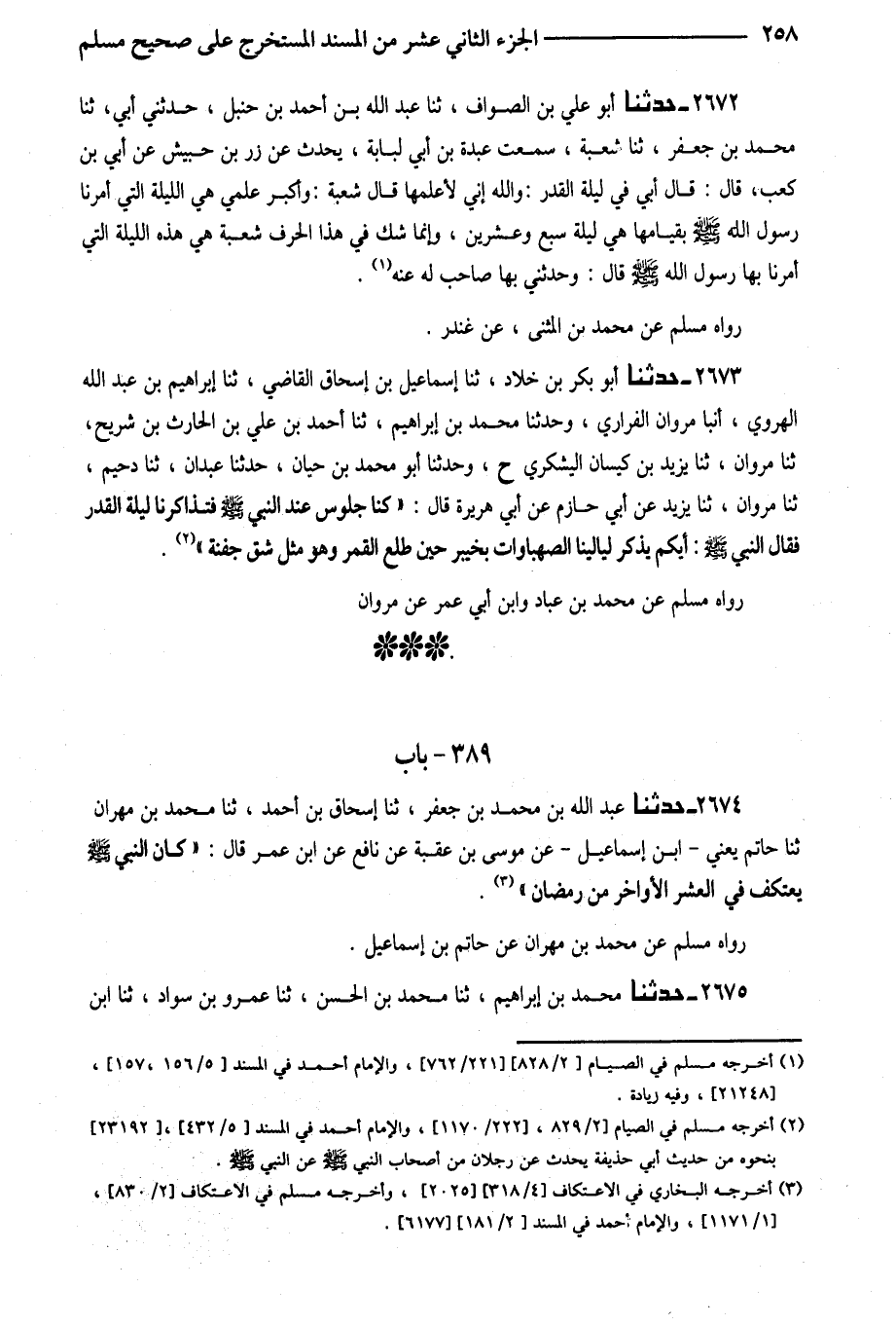 رَوَاهُ مُسْلِمٌ عَنْ مُحَمَّدِ بْنِ عَبَّادٍ وَابْنِ أَبِي عُمَرَ عَنْ مَرْوَانَ