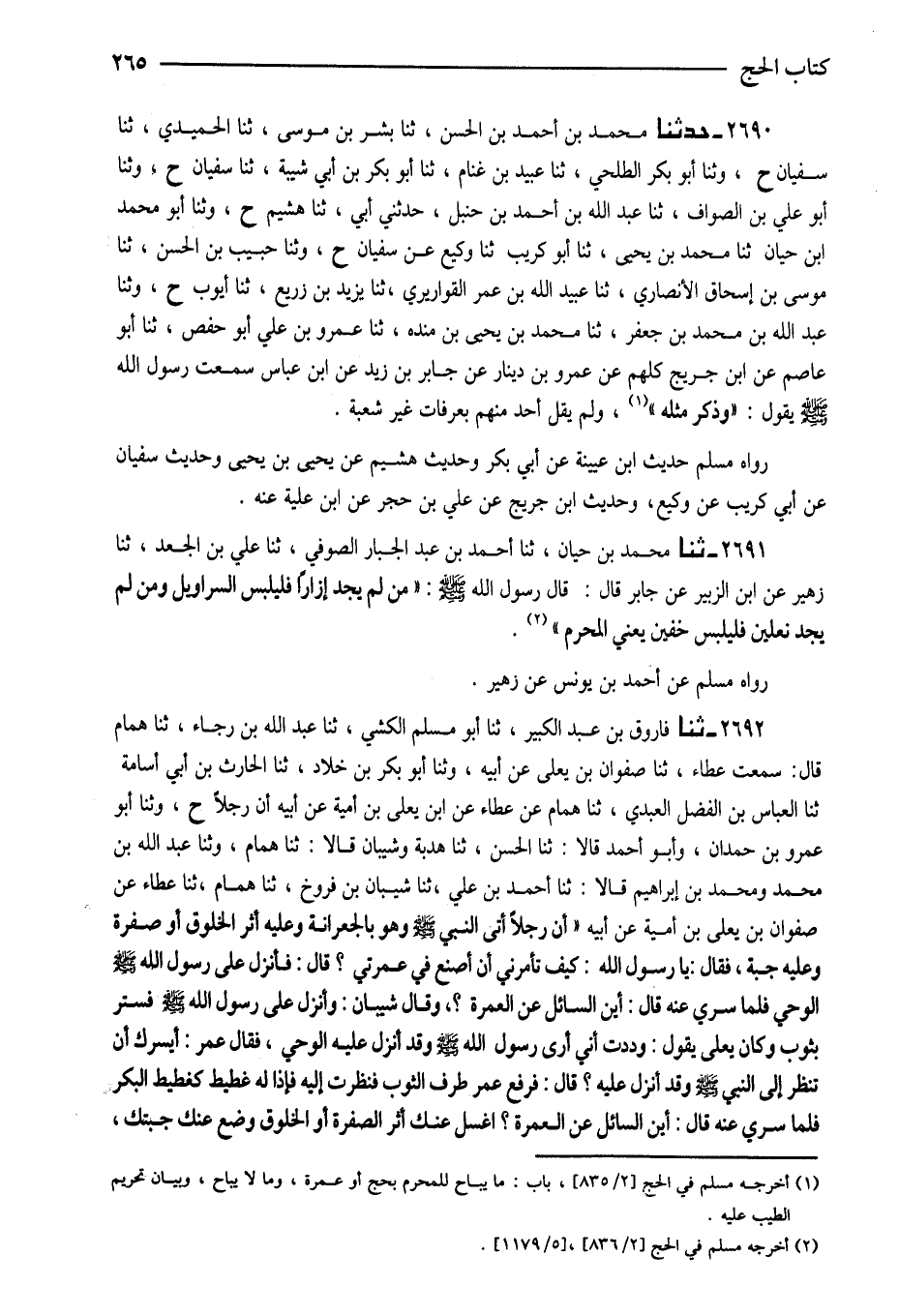 2691 - ثَنَا مُحَمَّدُ بْنُ حَيَّانَ ثَنَا أَحْمَدُ بْنُ عَبْدِ الْجَبَّارِ الصُّوفِيُّ ثَنَا عَلِيُّ بْنُ الْجَعْدِ ثَنَا زُهَيْرٌ عَنِ ابْنِ الزُّبَيْرِ عَنْ جَابِرٍ قَالَ قَالَ رَسُولُ اللَّهِ صَلَّى اللَّهُ عَلَيْهِ وَسَلَّمَ مَنْ لَمْ يَجِدْ إِزَارًا فَلْيَلْبَسِ السَّرَاوِيلَ وَمَنْ لَمْ يَجِدْ نَعْلَيْنِ فَلْيَلْبَسْ خُفَّيْنِ يَعْنِي الْمُحْرِمَ