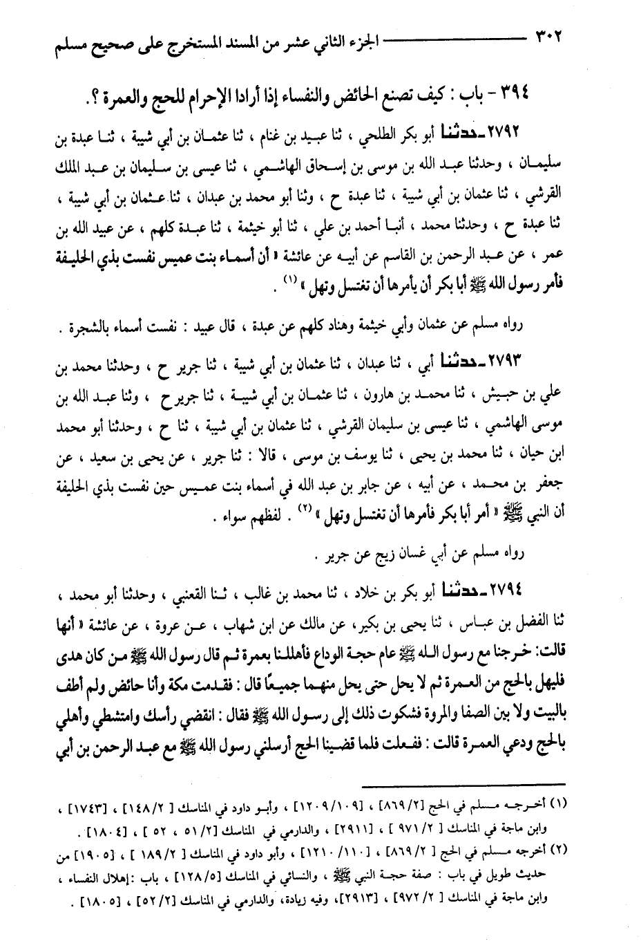 2792 - حَدَّثَنَا أَبُو بَكْرٍ الطَّلْحِيُّ ثَنَا عُبَيْدُ بْنُ غَنَّامٍ ثَنَا عُثْمَانُ بْنُ أَبِي شيبَة ثَنَا عبد ة بْنُ سُلَيْمَانَ وَحَدَّثَنَا عَبْدُ اللَّهِ بْنُ مُوسَى بْنِ إِسْحَاقَ الْهَاشِمِيُّ ثَنَا عِيسَى بْنُ سُلَيْمَانَ بْنِ عَبْدِ الْمَلِكِ الْقُرَشِيُّ ثَنَا عُثْمَانُ بْنُ أَبِي شَيْبَةَ ثَنَا عَبْدُ ة ح وَثَنَا أَبُو مُحَمَّدِ بْنُ عبد ان ثَنَا عُثْمَانُ بْنُ أَبِي شَيْبَةَ ثَنَا عبد ة ح وَحَدَّثَنَا مُحَمَّدٌ أَنْبَا أَحْمَدُ بْنُ عَلِيٍّ ثَنَا أَبُو خَيْثَمَةَ ثَنَا عبد ة كُلُّهُمْ عَنْ عُبَيْدِ اللَّهِ بْنِ عُمَرَ عَنْ عَبْدِ الرَّحْمَنِ بْنِ الْقَاسِمِ عَنْ أَبِيهِ عَنْ عَائِشَةَ أَنَّ أَسْمَاءَ بِنْتَ عُمَيْسٍ نُفِسَتْ بِذِي الْحُلَيْفَةَ فَأَمَرَ رَسُولُ اللَّهِ صَلَّى اللَّهُ عَلَيْهِ وَسَلَّمَ أَبَا بَكْرٍ أَنْ يَأْمُرَهَا أَنْ تَغْتَسِلَ وَتُهِلَّ