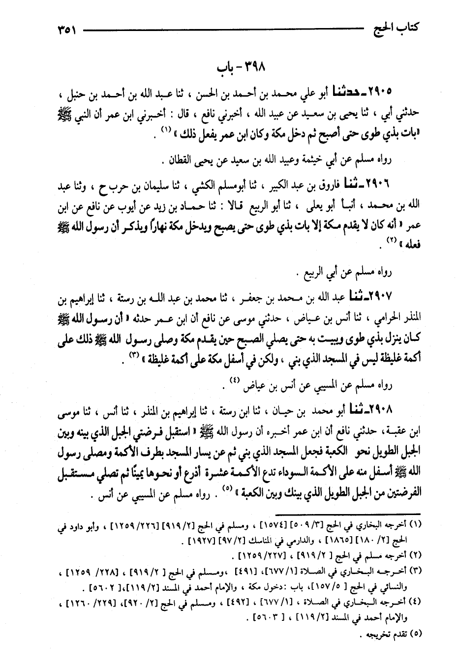 2906 - ثَنَا فَارُوقُ بْنُ عَبْدِ الْكَبِيرِ ثَنَا أَبُو مُسْلِمٍ الْكَشِّيُّ ثَنَا سُلَيْمَانُ بْنُ حَرْبٍ ح وَثَنَا عَبْدُ اللَّهِ بْنُ مُحَمَّدٍ أنبا أَبُو يَعْلَى ثَنَا أَبُو الرَّبِيعِ قَالا ثَنَا حَمَّادُ بْنُ زَيْدٍ عَنْ أَيُّوبَ عَنْ نَافِعٍ عَنِ ابْنَ عُمَرَ (أَنَّهُ كَانَ لَا يَقْدَمُ مَكَّةَ إِلَّا بَات بدي طُوًى حَتَّى يُصْبِحَ وَيَدْخُلُ مَكَّةَ نَهَارًا وَيُذْكَرُ أَنَّ رَسُولَ اللَّهِ صَلَّى اللَّهُ عَلَيْهِ وَسَلَّمَ فَعَلَهُ)