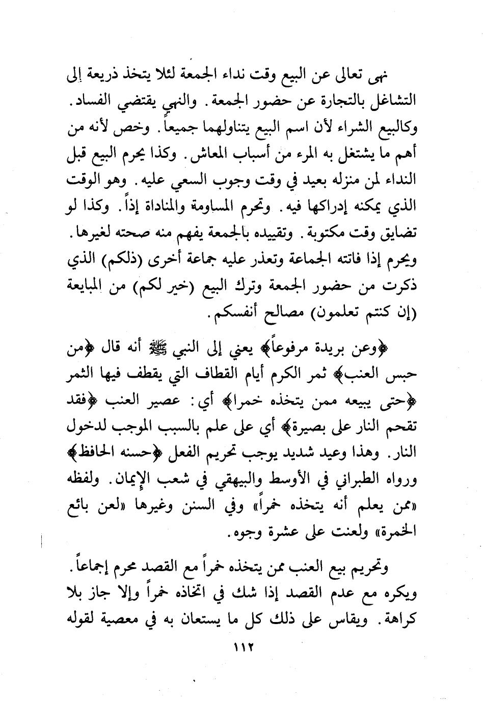 (وعن بريدة مرفوعًا) يعني إلى النبي - صلى الله عليه وسلم - أنه قال (من حبس العنب) ثمر الكرم أيام القطاف التي يقطف فيها الثمر (حتى يبيعه ممن يتخذه خمرًا) أي: عصير العنب (فقد تقحم النار على بصيرة) أي على علم بالسبب الموجب لدخول النار. وهذا وعيد شديد يوجب تحريم الفعل (حسنه الحافظ) ورواه الطبراني في الأوسط والبيهقي في شعب الإيمان. ولفظه "ممن يُعلم أنه يتخذه خمرًا" وفي السنن وغيرها "لعن بائع الخمرة" ولعنت على عشرة وجوه.