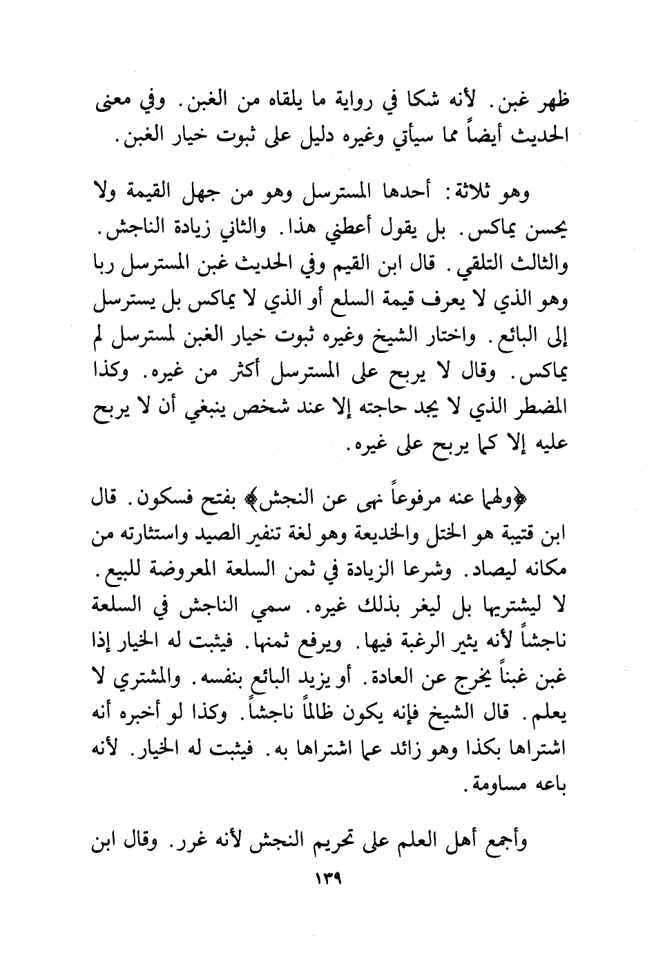 وهو ثلاثة: أحدها المسترسل وهو من جهل القيمة ولا يحسن يماكس. بل يقول أعطني هذا. والثاني زيادة الناجش.