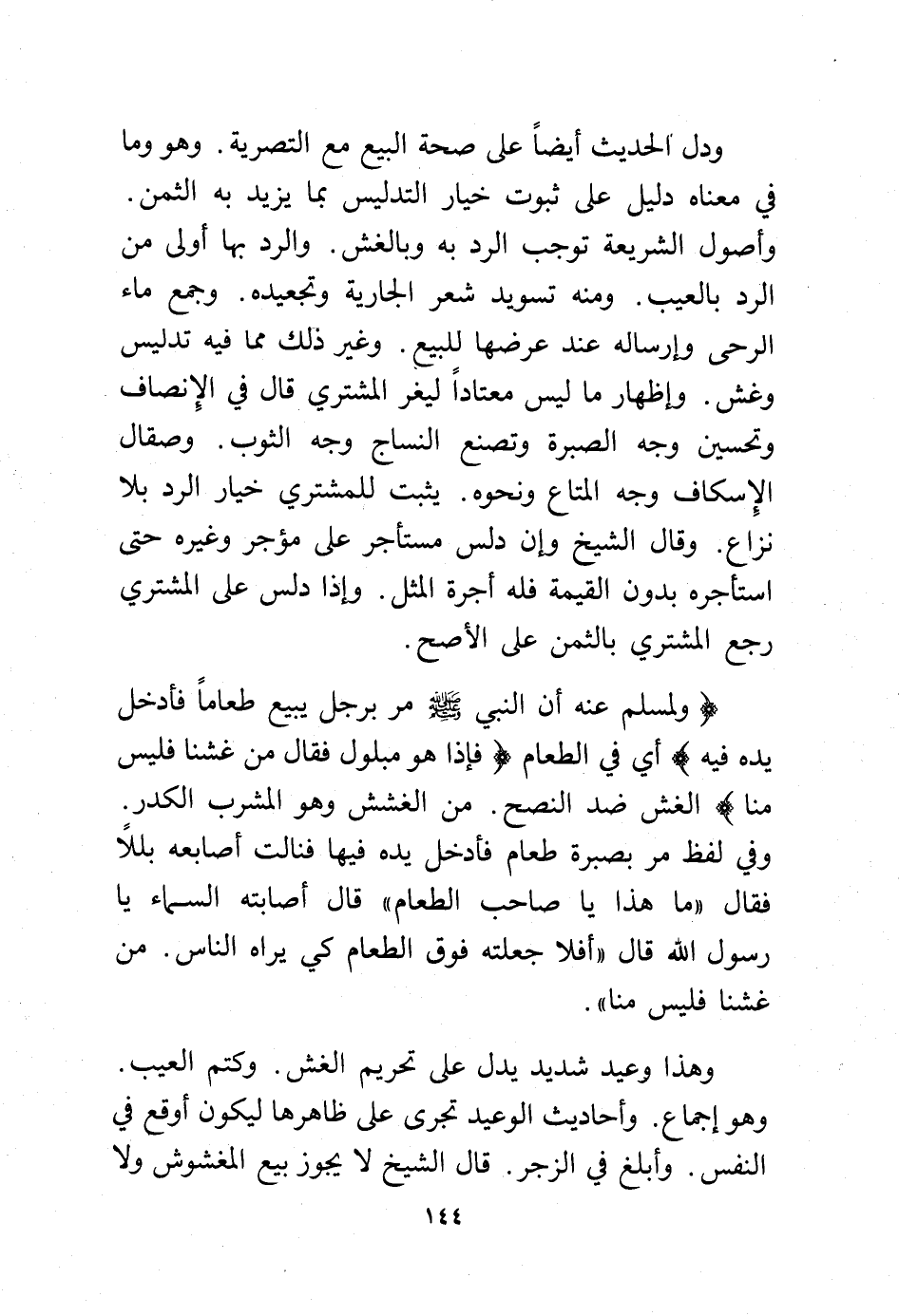 ودل الحديث أيضًا على صحة البيع مع التصرية. وهو وما في معناه دليل على ثبوت خيار التدليس بما يزيد به الثمن.
