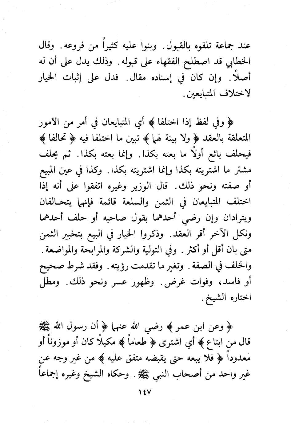 (وعن ابن عمر) -رضي الله عنهما- (أن رسول الله - صلى الله عليه وسلم - قال من ابتاع) أي اشترى (طعامًا) مكيلًا كان أو موزونًا أو معدودًا (فلا يبعه حتى يقبضه متفق عليه) من غير وجه عن غير واحد من أصحاب النبي - صلى الله عليه وسلم - وحكاه الشيخ وغيره إجماعًا