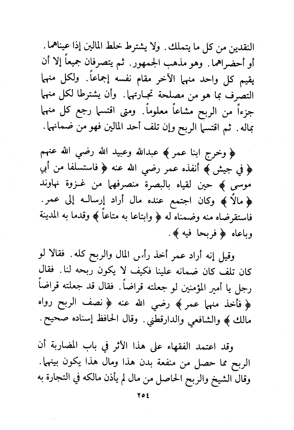 (وخرج ابنا عمر) عبد الله وعبيد الله رضي الله عنهم (في جيش) أنفذه عمر -رضي الله عنه- (فاستسلفا من أبي موسى) حين لقياه بالبصرة منصرفهما من غزوة نهاوند (مالًا) وكان اجتمع عنده مال أراد إرساله إلى عمر. فاستقرضاه منه وضمناه له (وابتاعا به متاعًا) وقدما به المدينة وباعاه (فربحا فيه).