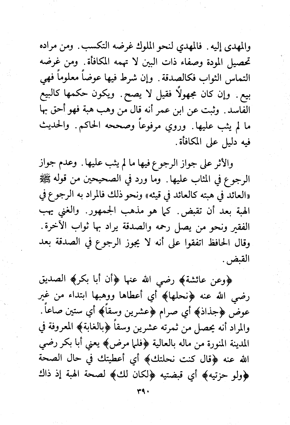 والأثر على جواز الرجوع فيها ما لم يثبت عليها. وعدم جواز الرجوع في المثاب عليها. وما ورد في الصحيحين من قوله - صلى الله عليه وسلم - "العائد في هبته كالعائد في قيئه" ونحو ذلك فالمراد به الرجوع في الهبة بعد أن تقبض. كما هو مذهب الجمهور. والغني يهب الفقير ونحو من يصل رحمه والصدقة يراد بها ثواب الآخرة وقال الحافظ اتفقوا على أنه لا يجوز الرجوع في الصدقة بعد القبض.