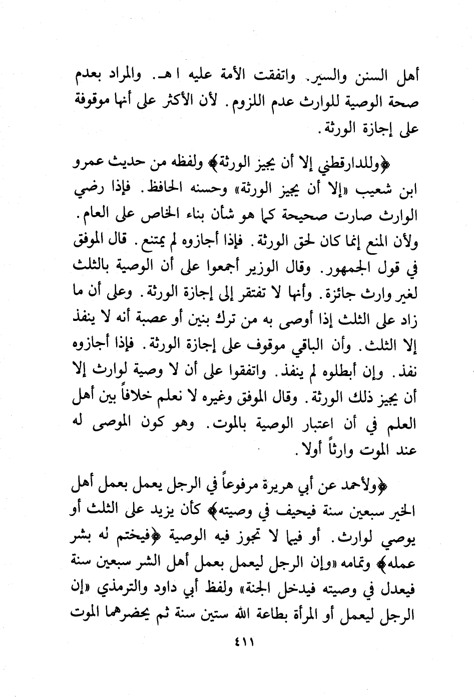 أهل السنن والسير. واتفقت الأمة عليه اهـ. والمراد بعدم صحة الوصية للوارث عدم اللزوم. لأن الأكثر على أنها موقوفة على إجازة الورثة.