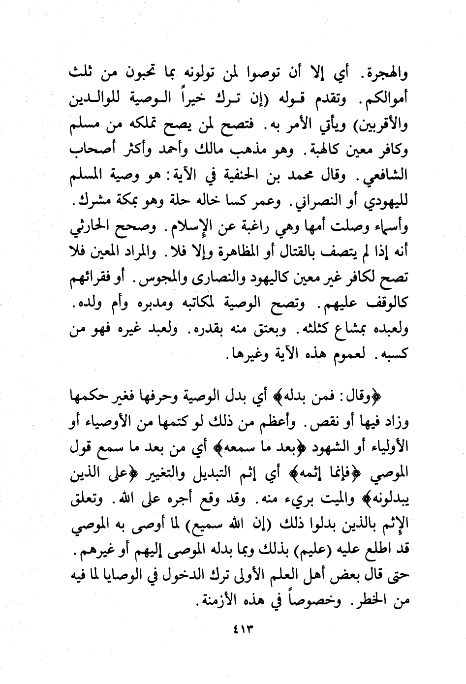 والهجرة. أي إلا أن تواصوا لمن تولونه بما تحبون من ثلث أموالكم. وتقدم قوله (إن ترك خيراً الوصية للوالدين والأقربين) ويأتي الأمر به. فتصح لمن يصح تملكه من مسلم وكافر معين كالهبة. وهو مذهب مالك وأحمد وأكثر أصحاب الشافعي. وقال محمد بن الحنفية في الآية هو وصية المسلم لليهودي أو النصراني. وعمر كسا خاله حلة وهو بمكة مشرك. وأسماء وصلت أمها وهي راغبة عن الإسلام. وصحح الحارثي أنه إذا لم يتصف بالقتال أو المظاهرة وإلا فلا. والمراد المعين فلا تصح لكافر غير معين كاليهود والنصارى والمجوس. أو فقرائهم كالوقف عليهم. وتصح الوصية لمكاتبه ومدبره وأم ولده. ولعبده بمشاع كثلثه. وبعتق منه بقدره. ولعبد غيره فهو من كسبه. لعموم هذه الآية وغيرها.