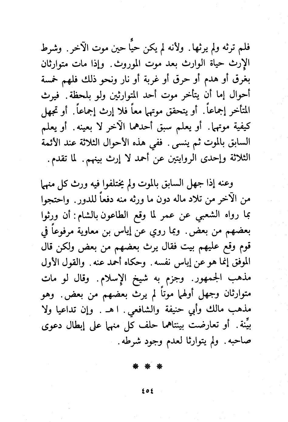 فلم ترثه ولم يرثها. ولأنه لم يكن حيًا حين موت الآخر. وشرط الإرث حياة الوارث بعد موت الموروث. وإذا مات متوارثان بغرق أو هدم أو حرق أو غربة أو نار ونحو ذلك فلهم خمسة أحوال إما أن يتأخر موت أحد المتوارثين ولو بلحظة. فيرث المتأخر إجماعًا. أو يتحقق موتهما معًا فلا إرث إجماعًا. أو تجهل كيفية موتهما. أو يعلم سبق أحدهما الآخر لا بعينه. أو يعلم السابق بالموت ثم ينسى. ففي هذه الأحوال الثلاثة عند الأئمة الثلاثة وإحدى الروايتين عن أحمد لا إرث بينهم. لما تقدم.