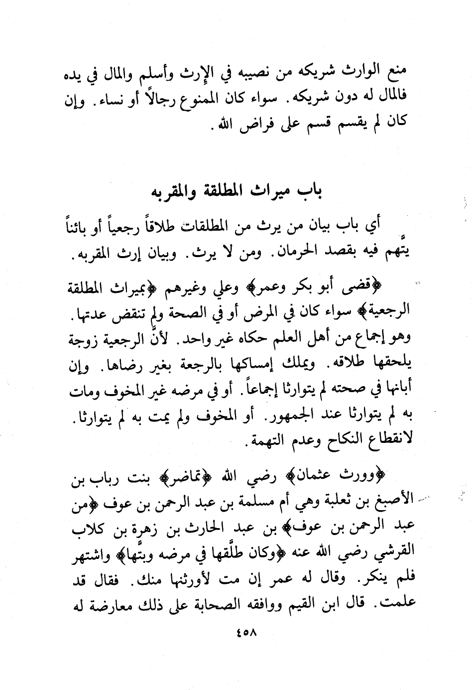 باب ميراث المطلقة والمقربة