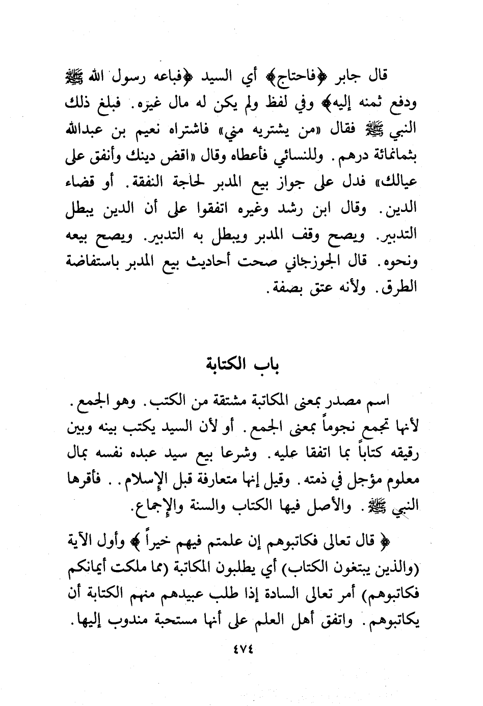 قال تعالى: {فَكَاتِبُوهُمْ إِنْ عَلِمْتُمْ فِيهِمْ خَيْرًا} وأول الآية {وَالَّذِينَ يَبْتَغُونَ الْكِتَابَ} أي يطلبون المكاتبة {مِمَّا مَلَكَتْ أَيْمَانُكُمْ فَكَاتِبُوهُمْ} أمر تعالى السادة إذا طلب عبيدهم منهم الكتابة