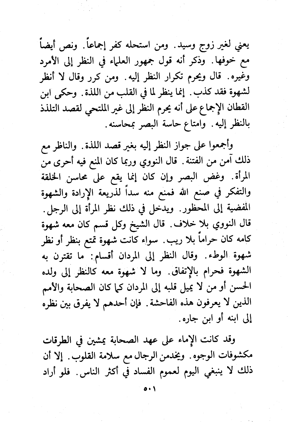 قال النووي بلا خلاف. قال الشيخ وكل قسم كان معه شهوة كامه كان حرامًا بلا ريب. سواء كانت شهوة تمتع بنظر أو نظر شهوة الوطء وقال النظر إلى المردان أقسام: ما تقترن به الشهوة فحرام بالاتفاق. وما لا شهوة معه كالنظر إلى ولده الحسن أو من لا يميل قلبه إلى المردان كما كان الصحابة والأمم الذين لا يعرفون هذه الفاحشة. فإن أحدهم لا يفرق بين نظره إلى ابنه أو ابن جاره.