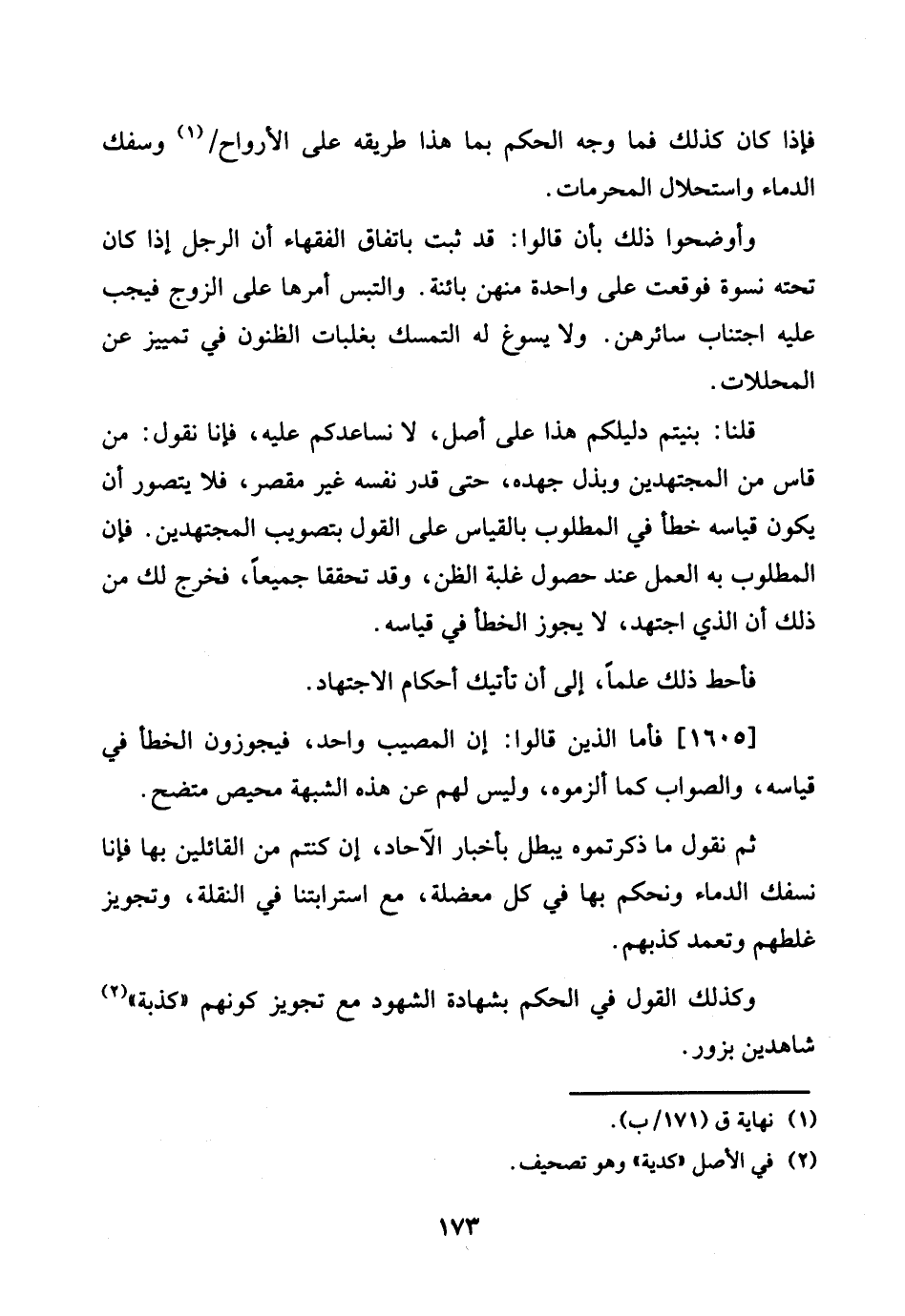 1605 - فَأَما الَّذين قَالُوا: إِن الْمُصِيب وَاحِد، فيجوزون الْخَطَأ فِي قِيَاسه، وَالصَّوَاب كَمَا ألزموه، وَلَيْسَ لَهُم عَن هَذِه الشُّبْهَة محيص متضح.