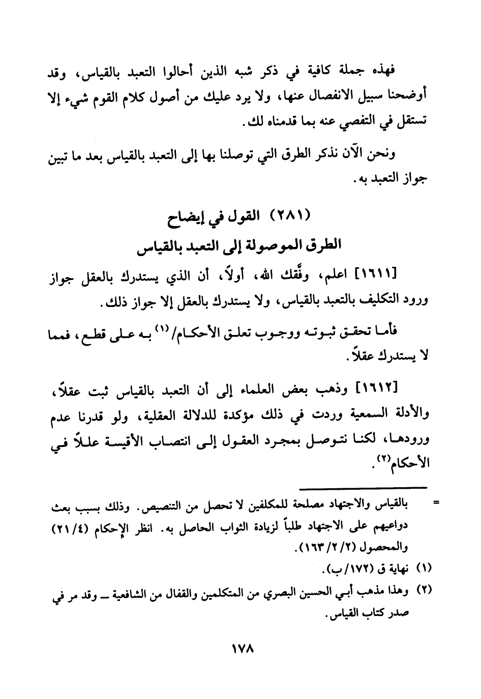 (281) القَوْل فِي إِيضَاح الطّرق الموصولة الى التَّعَبُّد بِالْقِيَاسِ
