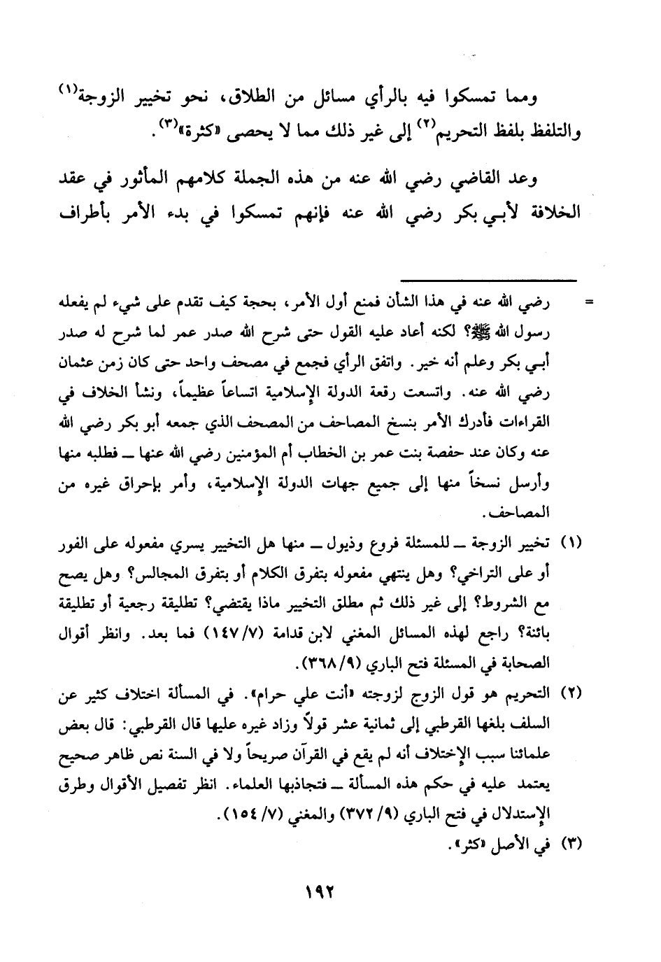وَمِمَّا تمسكوا فِيهِ بِالرَّأْيِ مسَائِل من الطَّلَاق، نَحْو تَخْيِير الزَّوْجَة والتلفظ بِلَفْظ التَّحْرِيم إِلَى غير ذَلِك مِمَّا لَا يُحْصى " كَثْرَة ".