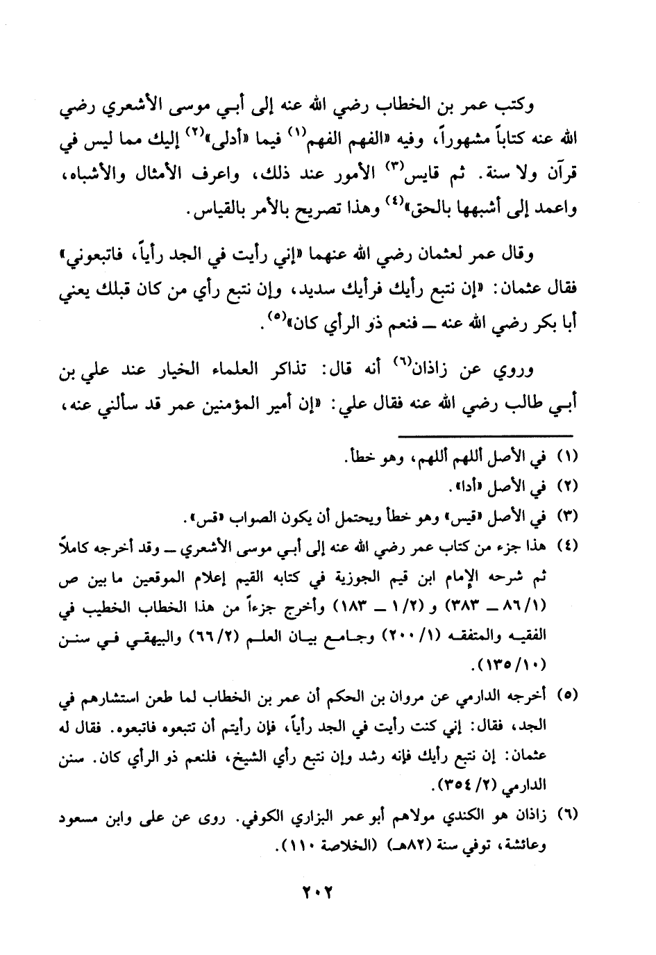 وَرُوِيَ عَن زَاذَان أَنه قَالَ: تَذَاكر الْعلمَاء الْخِيَار عِنْد عَليّ بن أبي طَالب رَضِي الله عَنهُ فَقَالَ عَليّ: " إِن أَمِير الْمُؤمنِينَ عمر قد سَأَلَني عَنهُ،