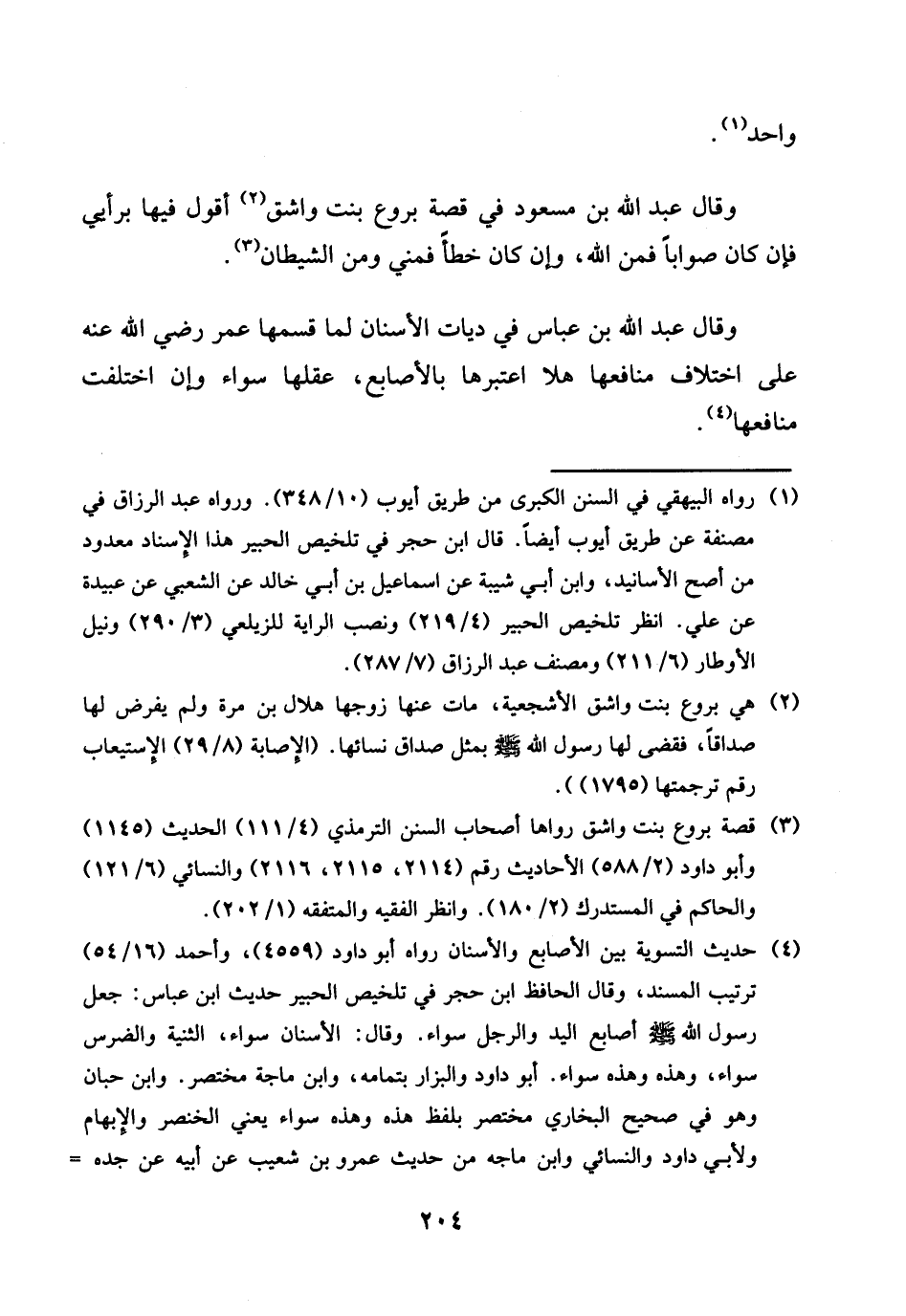 وَقَالَ عبد الله بن مَسْعُود فِي قصَّة بروع بنت واشق أَقُول فِيهَا برأيي فَإِن كَانَ صَوَابا فَمن الله، وَإِن كَانَ خطأ فمني وَمن الشَّيْطَان.