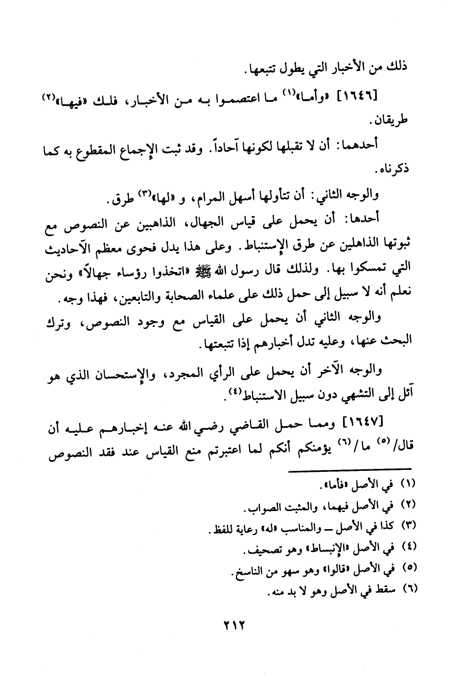أَحدهَا: أَن يحمل على قِيَاس الْجُهَّال، الذاهبين عَن النُّصُوص مَعَ ثُبُوتهَا الذاهلين عَن طرق الإستنباط. وعَلى هَذَا يدل فحوى مُعظم الْأَحَادِيث الَّتِي تمسكوا بهَا. وَلذَلِك قَالَ رَسُول الله [صلى الله عَلَيْهِ وَسلم] " اتَّخذُوا رُؤَسَاء جُهَّالًا " وَنحن نعلم أَنه لَا سَبِيل إِلَى حمل ذَلِك على عُلَمَاء الصَّحَابَة وَالتَّابِعِينَ، فَهَذَا وَجه.