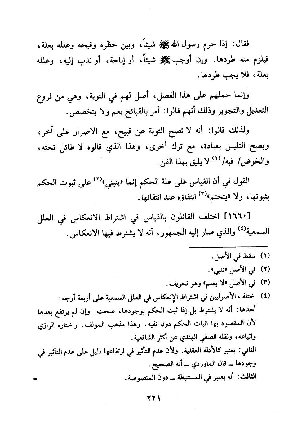 1660 - اخْتلف الْقَائِلُونَ بِالْقِيَاسِ فِي اشْتِرَاط الانعكاس فِي الْعِلَل السمعية وَالَّذِي صَار إِلَيْهِ الْجُمْهُور، أَنه لَا يشْتَرط فِيهَا الانعكاس.