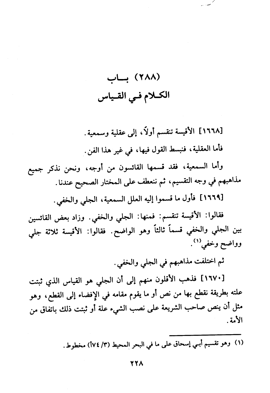 1668 - الأقيسة تَنْقَسِم أَولا، إِلَى عقلية وسمعية.