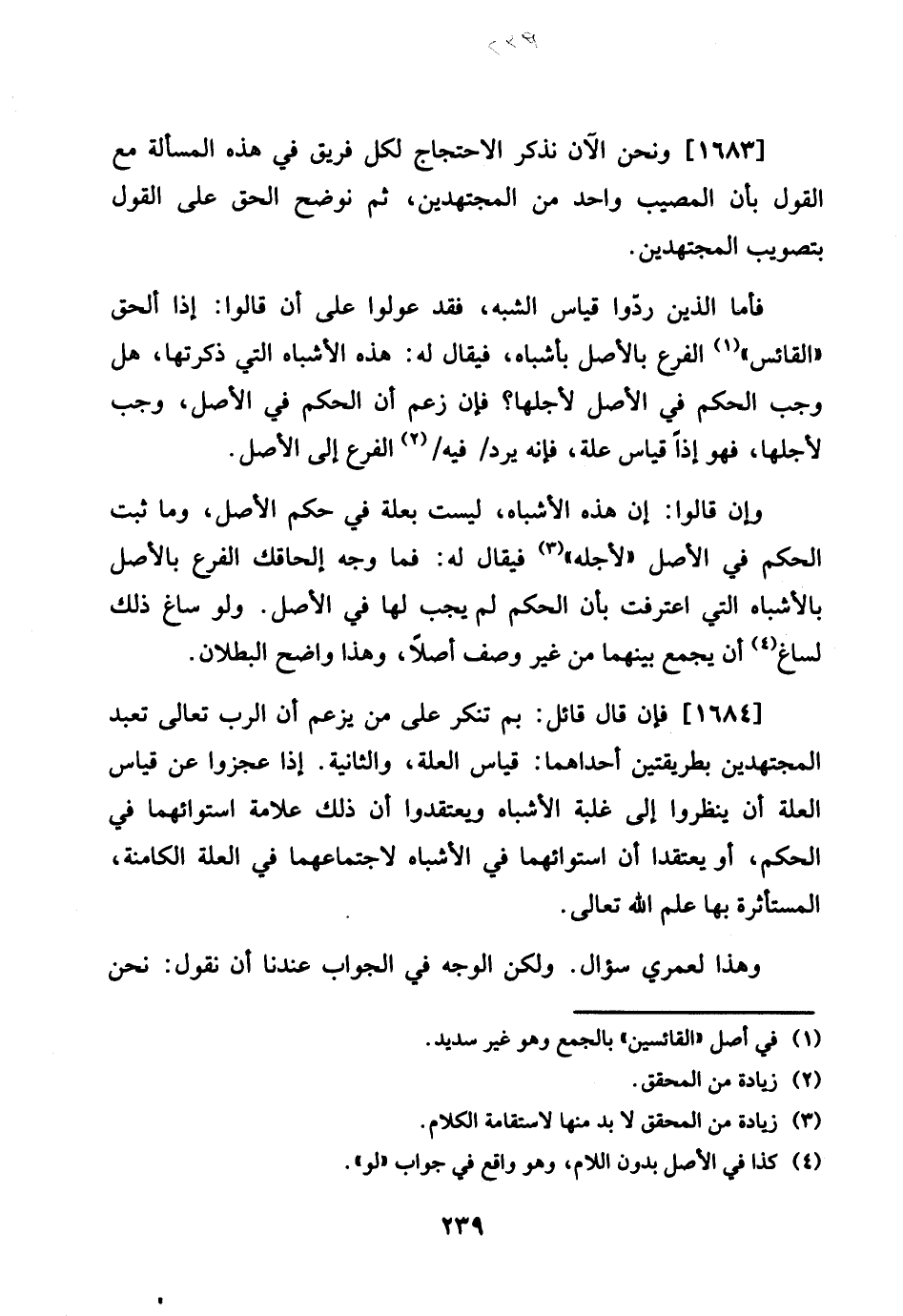 1683 - وَنحن الْآن نذْكر الِاحْتِجَاج لكل فريق فِي هَذِه الْمَسْأَلَة مَعَ القَوْل بِأَن الْمُصِيب وَاحِد من الْمُجْتَهدين، ثمَّ نوضح الْحق على القَوْل بتصويب الْمُجْتَهدين.