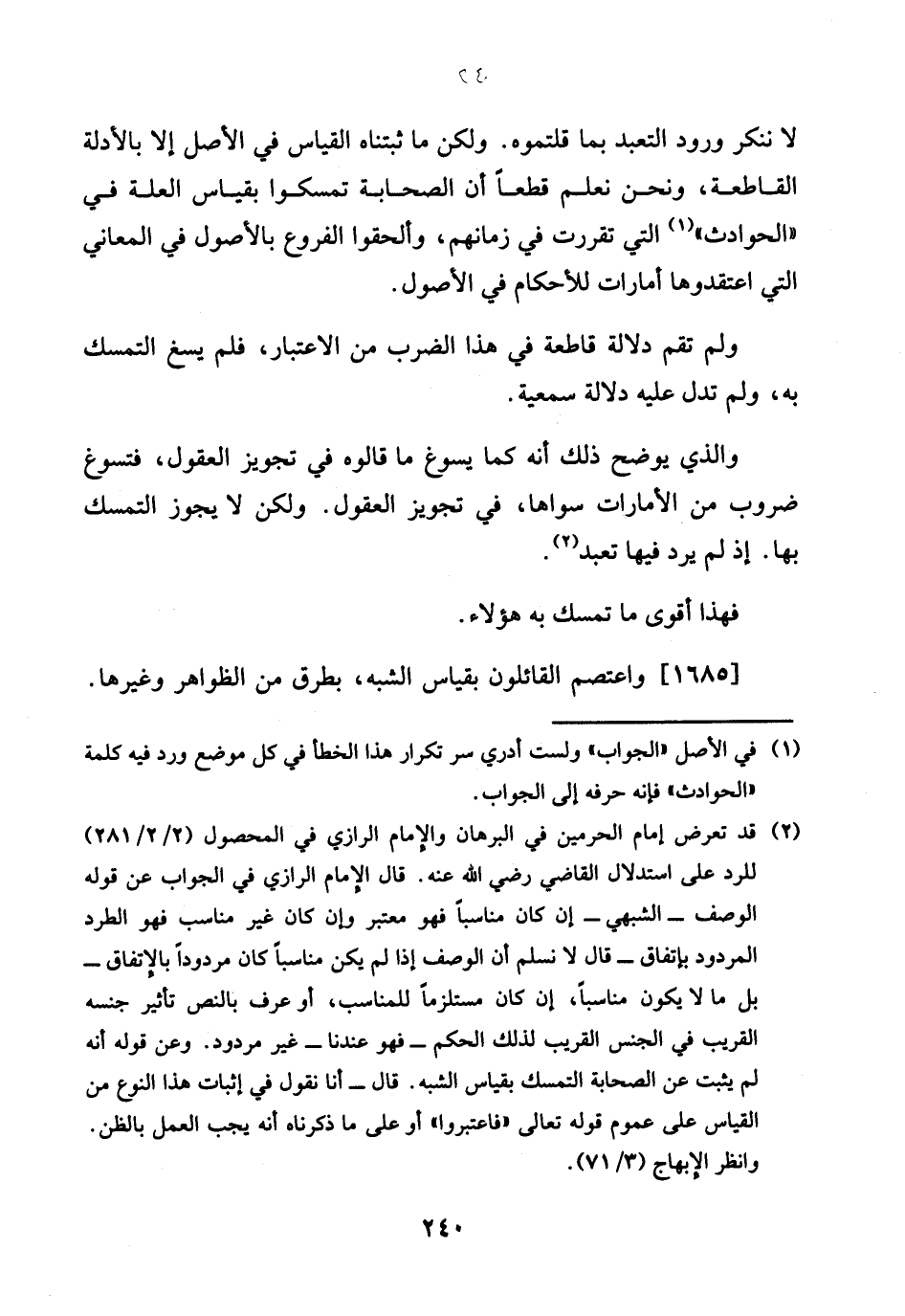 1685 - واعتصم الْقَائِلُونَ بِقِيَاس الشّبَه، بطرق من الظَّوَاهِر وَغَيرهَا.