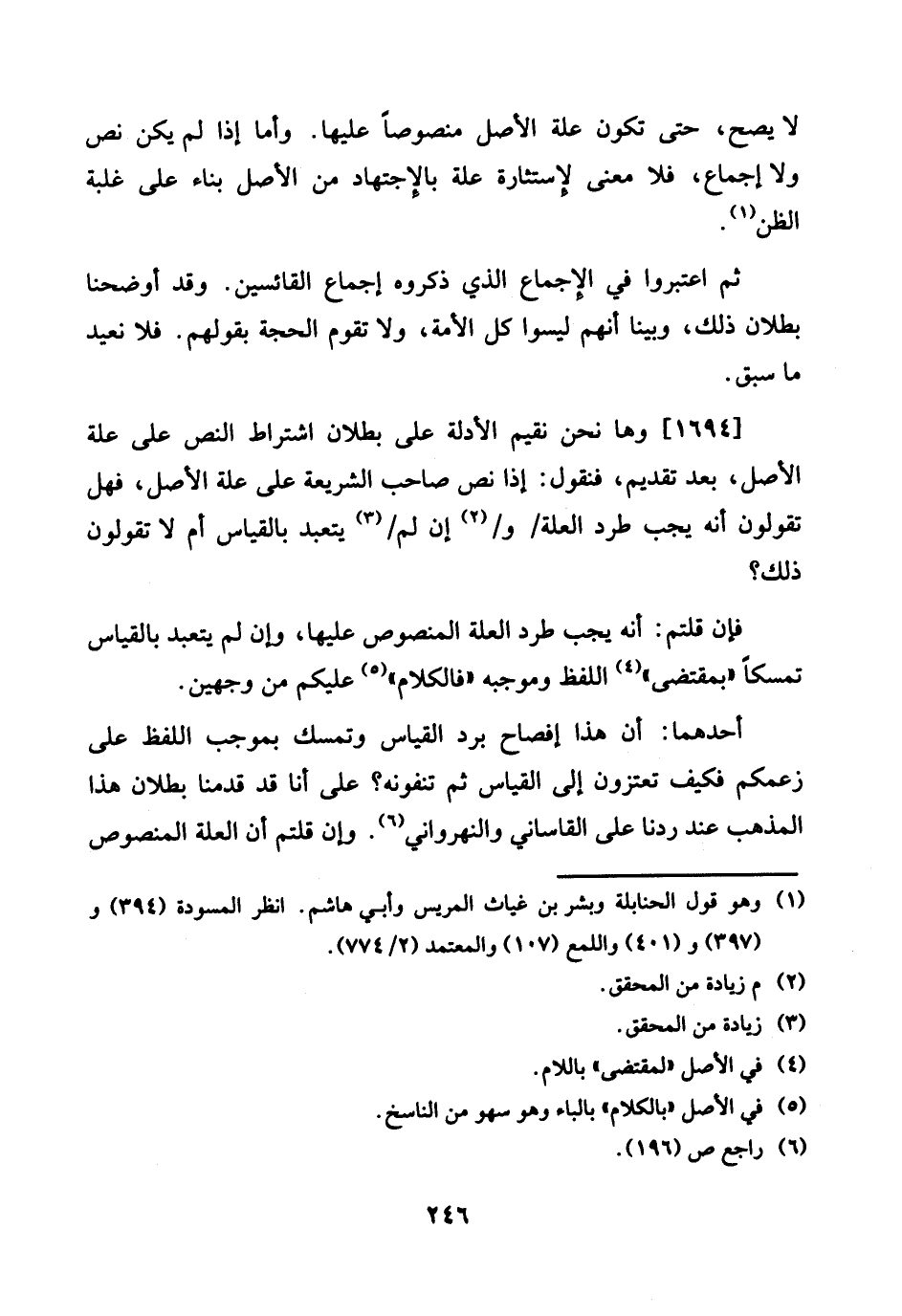 1694 - وَهَا نَحن نُقِيم الْأَدِلَّة على بطلَان اشْتِرَاط النَّص على عِلّة الأَصْل، بعد تَقْدِيم، فَنَقُول: إِذا نَص صَاحب الشَّرِيعَة على عِلّة الأَصْل، فَهَل تَقولُونَ أَنه يجب طرد الْعلَّة / و / إِن لم / يتعبد بِالْقِيَاسِ أم لَا تَقولُونَ ذَلِك؟