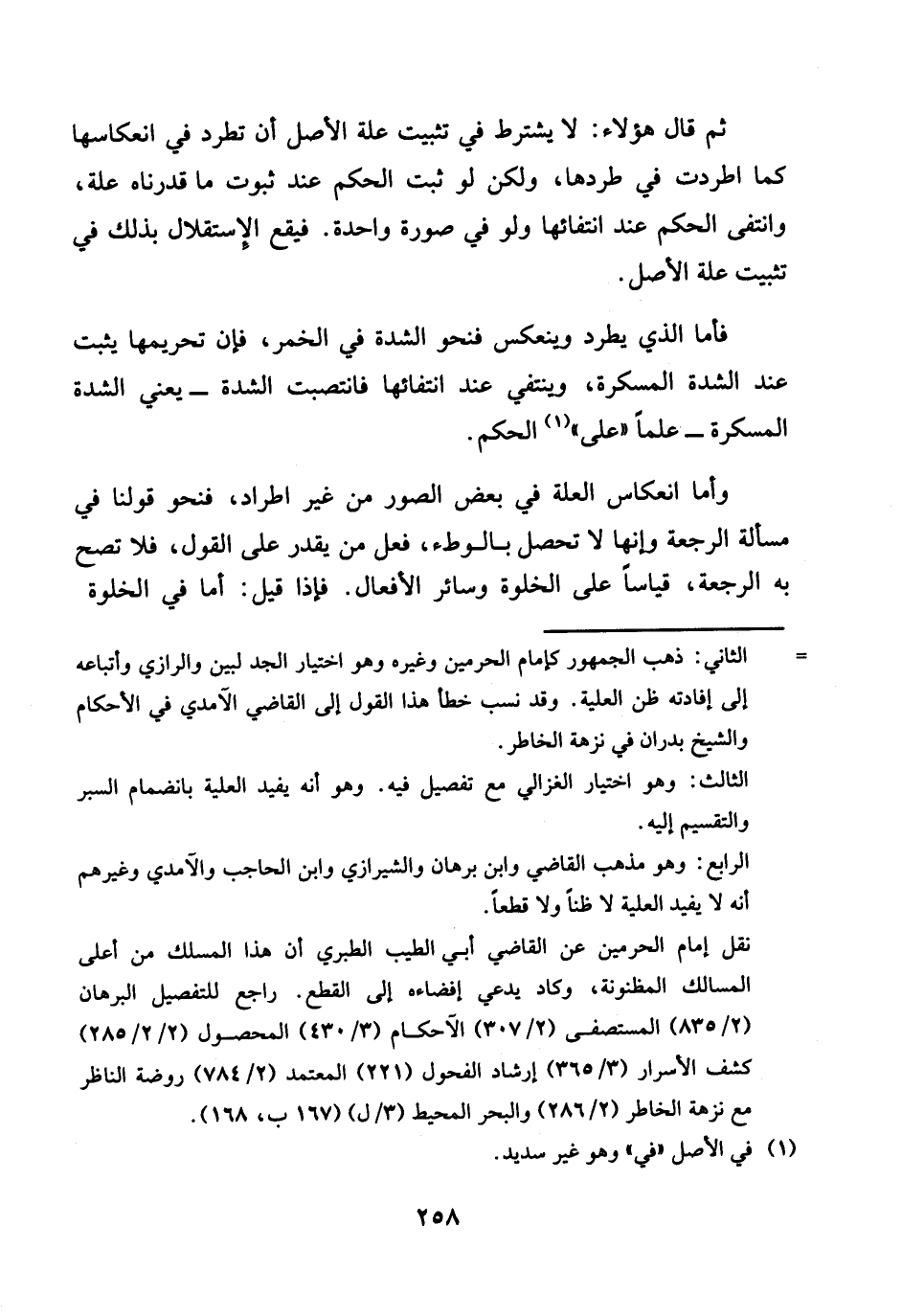 ثمَّ قَالَ هَؤُلَاءِ: لَا يشْتَرط فِي تثبيت عِلّة الأَصْل أَن تطرد فِي انعكاسها كَمَا اطردت فِي طردها، وَلَكِن لَو ثَبت الحكم عِنْد ثُبُوت مَا قدرناه عِلّة، وانتفى الحكم عِنْد انتفائها وَلَو فِي صُورَة وَاحِدَة. فَيَقَع الإستقلال بذلك فِي تثبيت عِلّة الأَصْل.