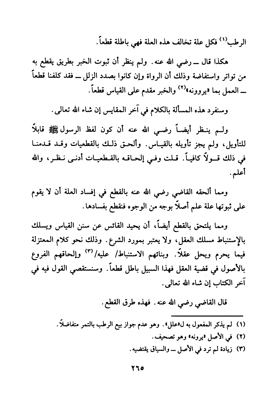 وَلم ينظر أَيْضا رَضِي الله عَنهُ أَن كَون لفظ الرَّسُول [صلى الله عَلَيْهِ وَسلم] قَابلا للتأويل، وَلم يجز تَأْوِيله بِالْقِيَاسِ. وَألْحق ذَلِك بالقطعيات وَقد قدمنَا فِي ذَلِك قولا كَافِيا. قلت وَفِي إِلْحَاقه بالقطعيات أدنى نظر، وَالله أعلم.