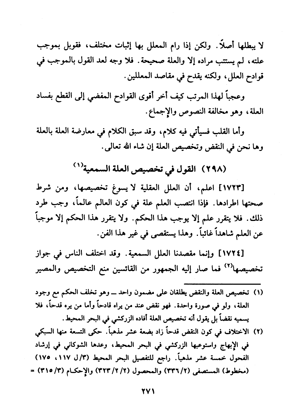 (298) القَوْل فِي تَخْصِيص الْعلَّة السمعية
