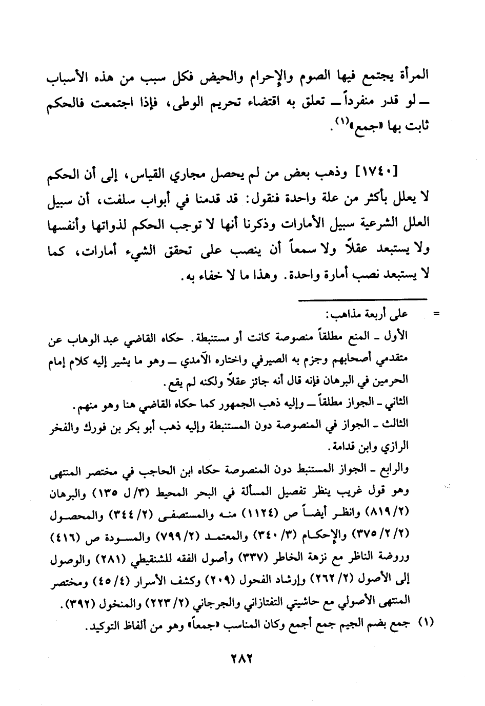 1740 - وَذهب بعض من لم يحصل مجاري الْقيَاس، إِلَى أَن الحكم لَا يُعلل بِأَكْثَرَ من عِلّة وَاحِدَة فَنَقُول: قد قدمنَا فِي أَبْوَاب سلفت، أَن سَبِيل الْعِلَل الشَّرْعِيَّة سَبِيل الأمارات وَذكرنَا أَنَّهَا لَا توجب الحكم لذواتها وأنفسها وَلَا يستبعد عقلا وَلَا سمعا أَن ينصب على تحقق الشَّيْء أَمَارَات، كَمَا لَا يستبعد نصب أَمارَة وَاحِدَة. وَهَذَا مَا لَا خَفَاء بِهِ.