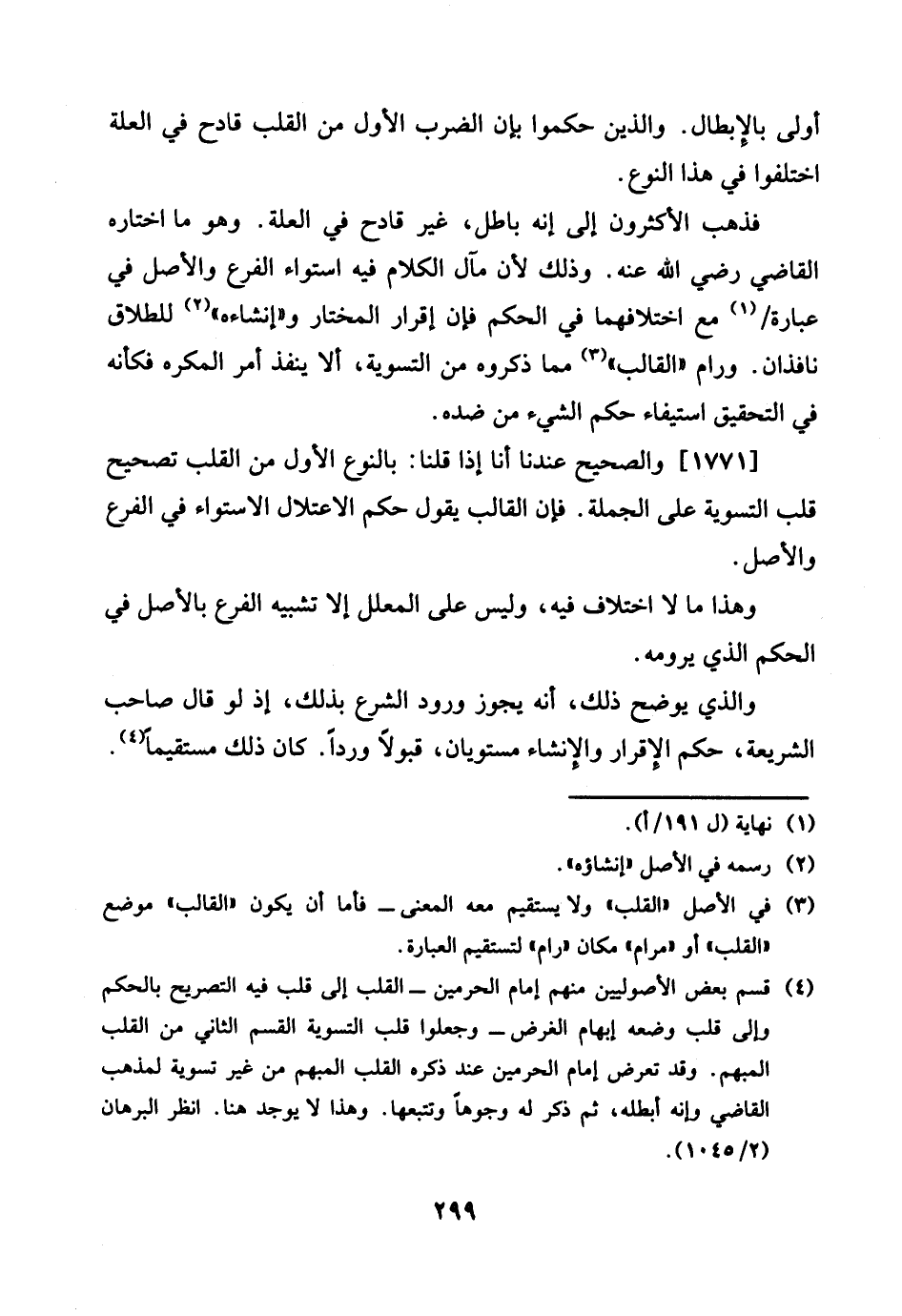 1771 - وَالصَّحِيح عندنَا أَنا إِذا قُلْنَا: بالنوع الأول من الْقلب تَصْحِيح قلب التَّسْوِيَة على الْجُمْلَة. فَإِن القالب يَقُول حكم الاعتلال الاسْتوَاء فِي الْفَرْع وَالْأَصْل.