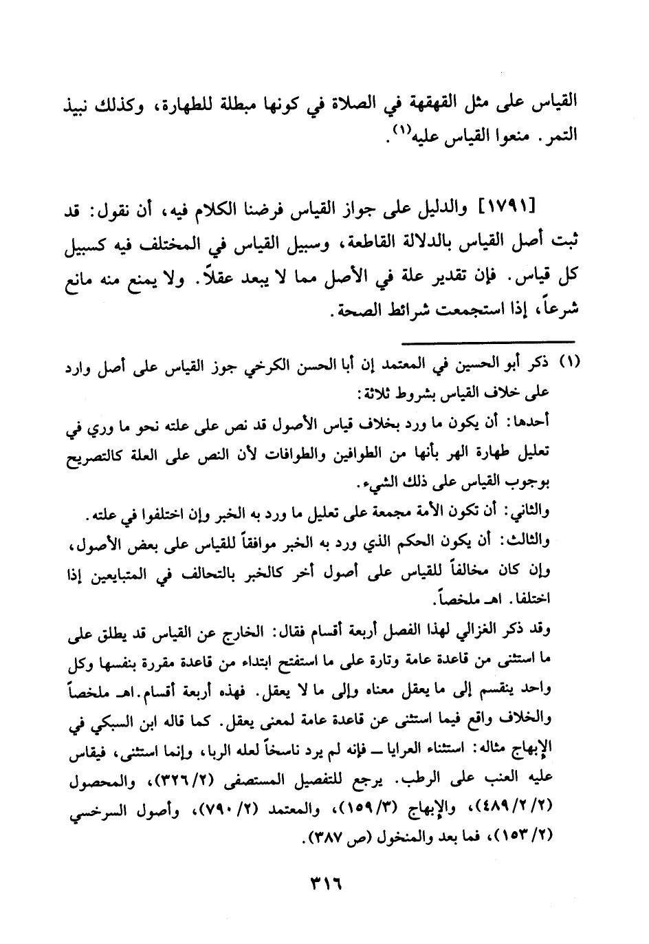 1791 - وَالدَّلِيل على جَوَاز الْقيَاس فَرضنَا الْكَلَام فِيهِ، أَن نقُول: قد ثَبت أصل الْقيَاس بِالدّلَالَةِ القاطعة، وسبيل الْقيَاس فِي الْمُخْتَلف فِيهِ كسبيل كل قِيَاس. فَإِن تَقْدِير عِلّة فِي الأَصْل مِمَّا لَا يبعد عقلا. وَلَا يمْنَع مِنْهُ مَانع شرعا، إِذا استجمعت شَرَائِط الصِّحَّة.