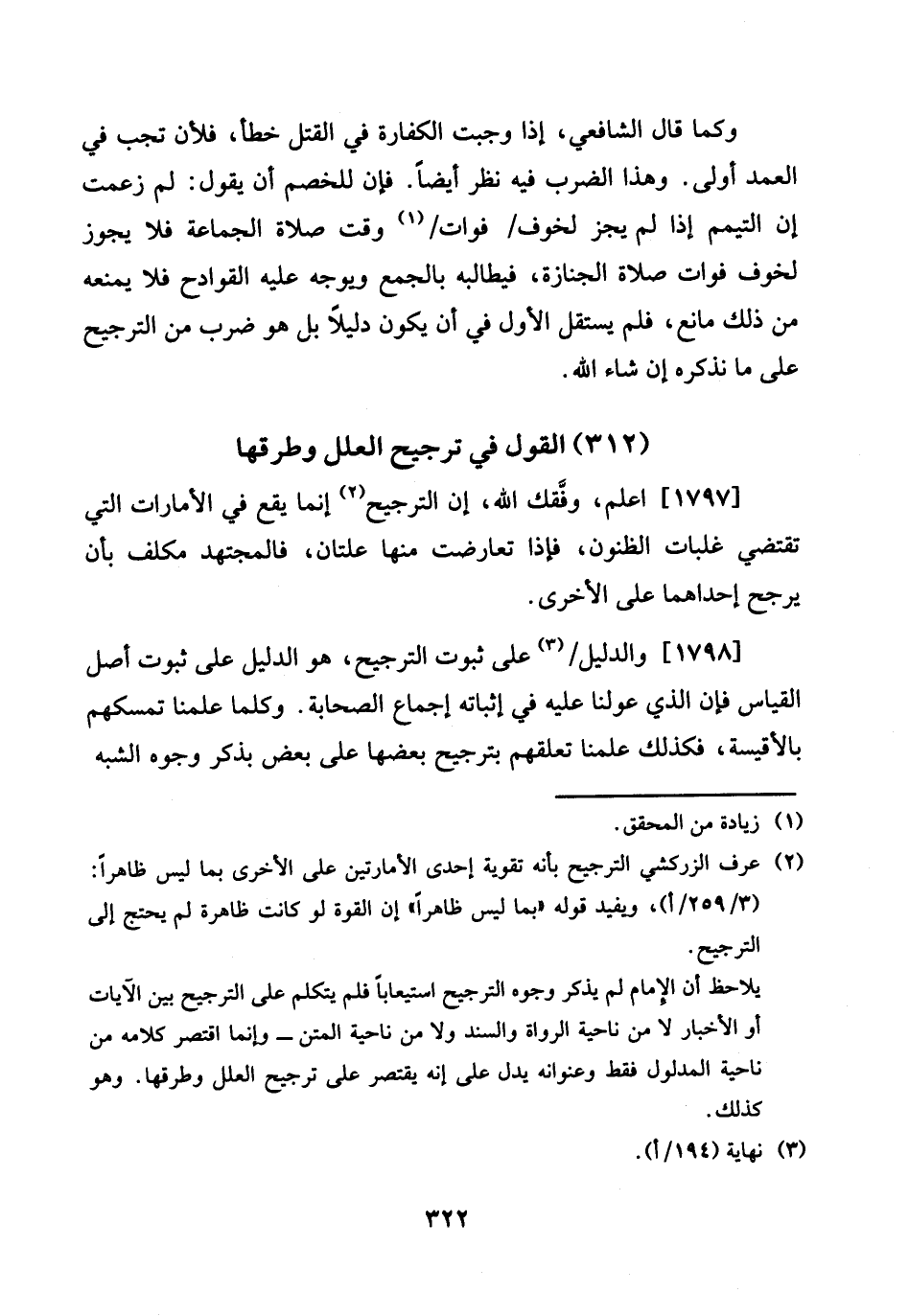 1797 - اعْلَم، وفقك الله، إِن التَّرْجِيح إِنَّمَا يَقع فِي الأمارات الَّتِي تَقْتَضِي غلبات الظنون، فَإِذا تَعَارَضَت مِنْهَا عِلَّتَانِ، فالمجتهد مُكَلّف بِأَن يرجح إِحْدَاهمَا على الْأُخْرَى.