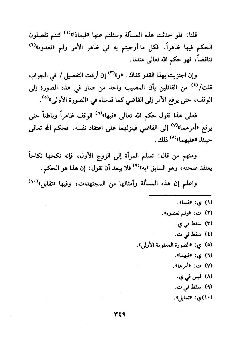 وَإِن اجتزيت بِهَذَا الْقدر كَفاك. " و " إِن أردْت التَّفْصِيل / فِي الْجَواب قلت / من الْقَائِلين بِأَن الْمُصِيب وَاحِد من صَار فِي هَذِه الصُّورَة إِلَى الْوَقْف، حَتَّى يرفع الْأَمر إِلَى القَاضِي كَمَا قدمْنَاهُ فِي " الصُّورَة الأولى ".