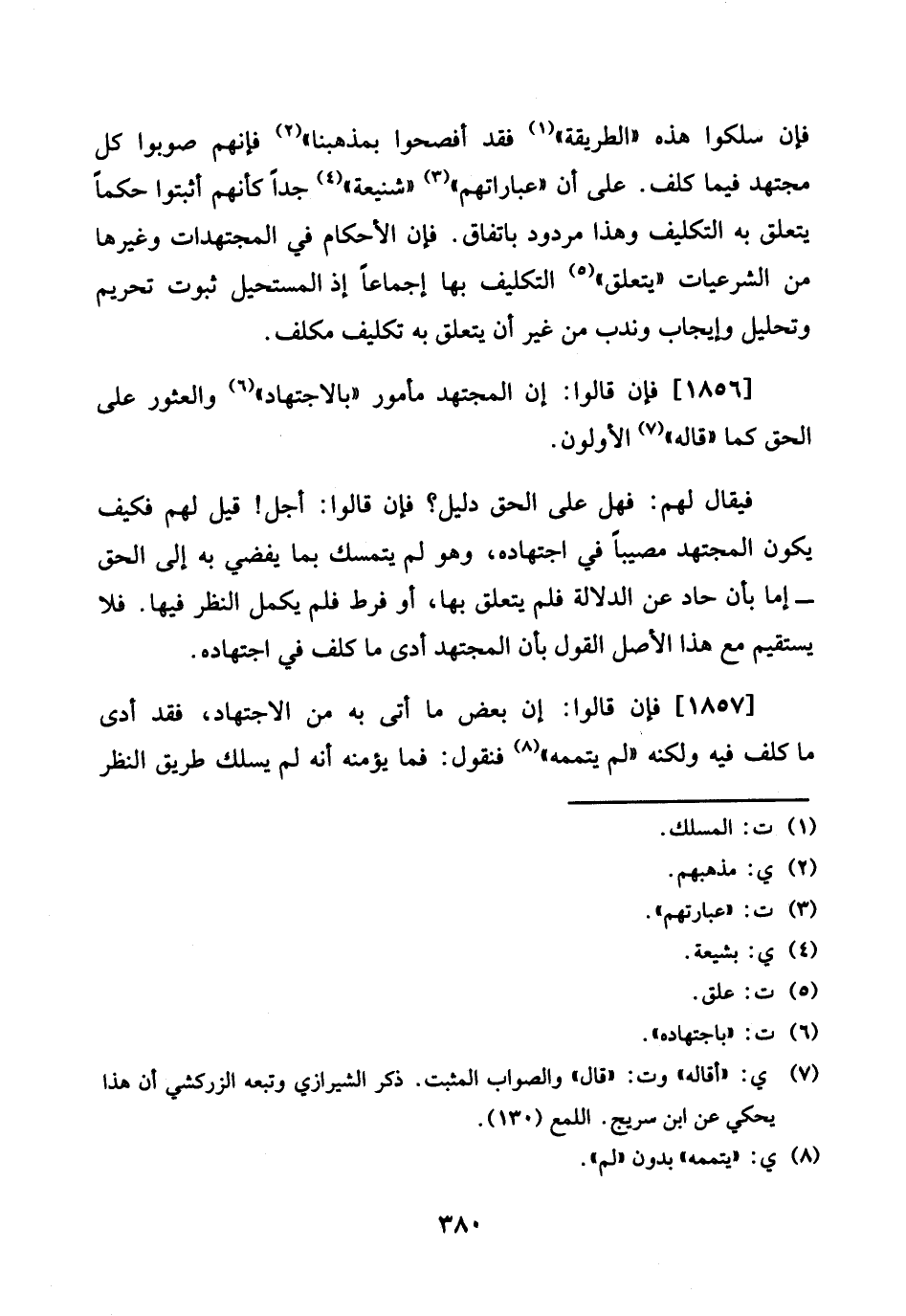1856 - فَإِن قَالُوا: إِن الْمُجْتَهد مَأْمُور " بِالِاجْتِهَادِ " والعثور على الْحق كَمَا " قَالَه " الْأَولونَ.