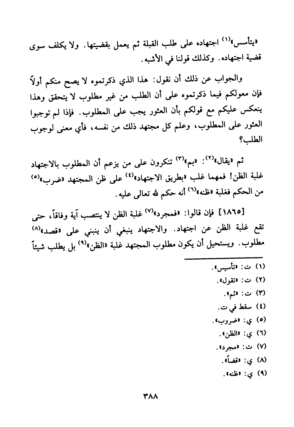1865 - فَإِن قَالُوا: " فمجرد " غَلَبَة الظَّن لَا ينْتَصب آيَة وفَاقا، حَتَّى تقع غَلَبَة الظَّن عَن اجْتِهَاد. وَالِاجْتِهَاد يَنْبَغِي أَن يَنْبَنِي على " قصد " مَطْلُوب. ويستحيل أَن يكون مَطْلُوب الْمُجْتَهد غَلَبَة " الظَّن " بل يطْلب شَيْئا