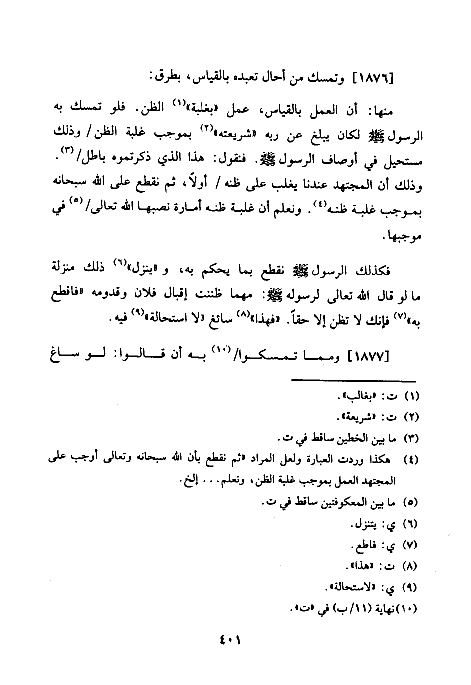 1876 - وَتمسك من أحَال تعبده بِالْقِيَاسِ، بطرق: