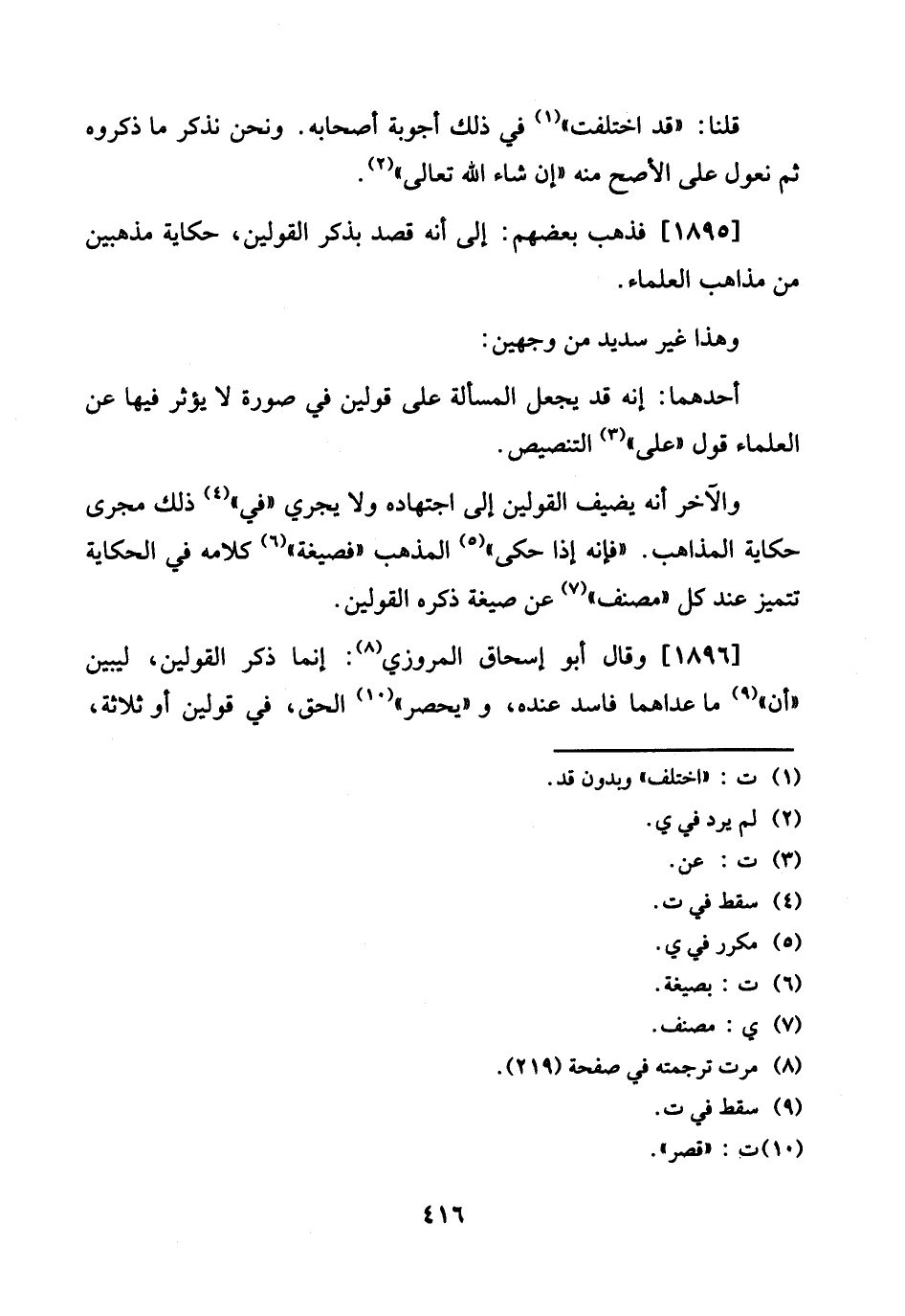 1896 - وَقَالَ أَبُو إِسْحَاق الْمروزِي: إِنَّمَا ذكر الْقَوْلَيْنِ، ليبين " أَن " مَا عداهما فَاسد عِنْده، و " يحصر " الْحق، فِي قَوْلَيْنِ أَو ثَلَاثَة،