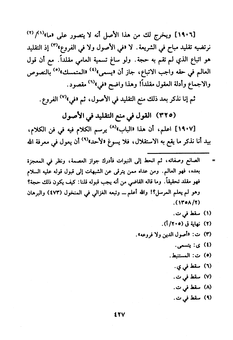 (325) القَوْل فِي منع التَّقْلِيد فِي الْأُصُول