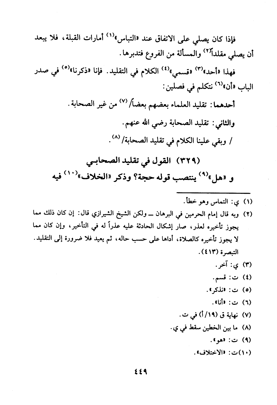 (329) القَوْل فِي تَقْلِيد الصَّحَابِيّ و " هَل " ينْتَصب قَوْله حجَّة؟ وَذكر " الْخلاف " فِيهِ