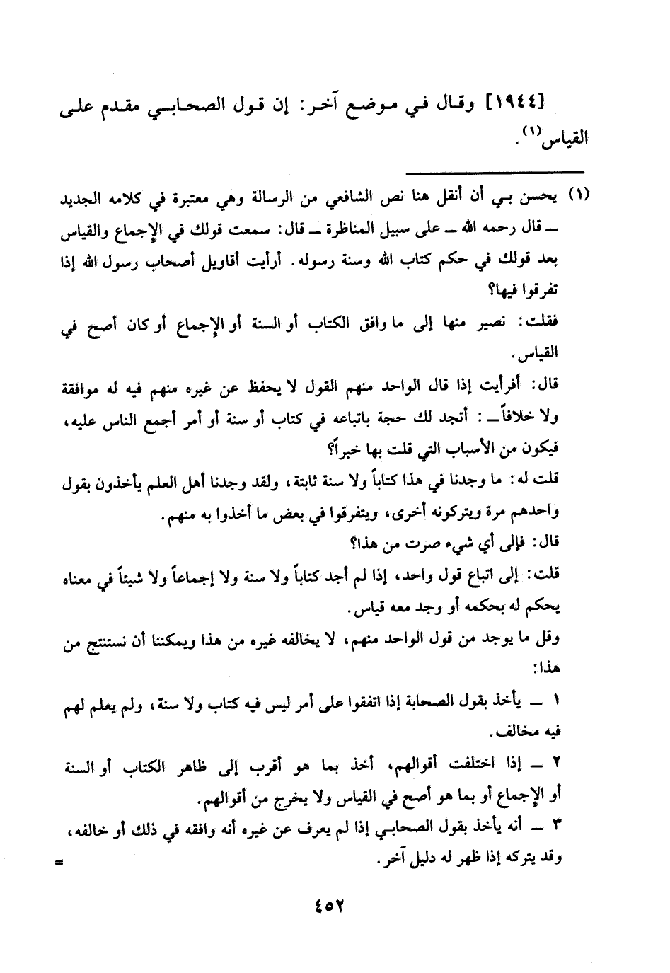 1944 - وَقَالَ فِي مَوضِع آخر: إِن قَول الصَّحَابِيّ مقدم على الْقيَاس.
