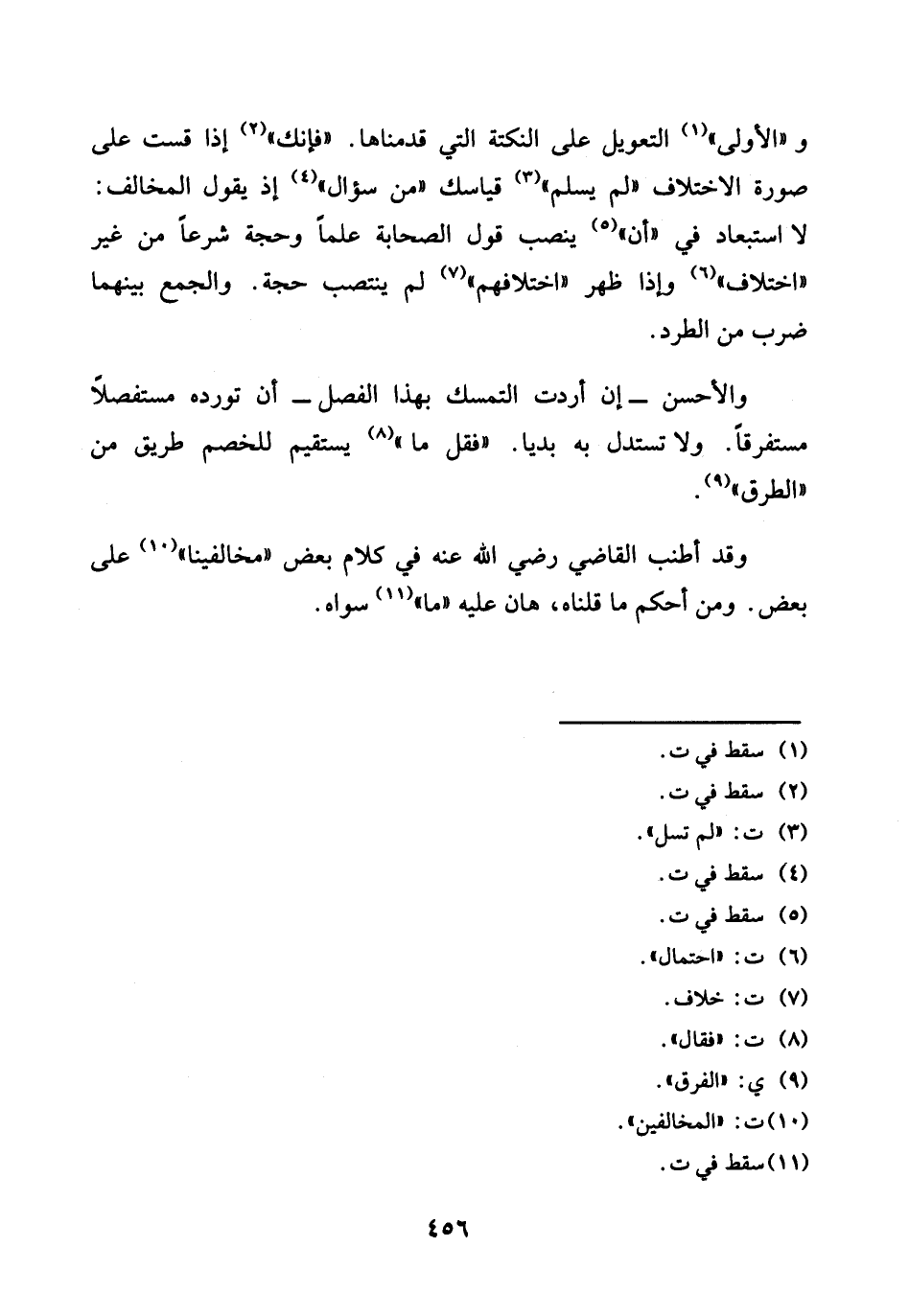 وَقد أطنب القَاضِي رَضِي الله عَنهُ فِي كَلَام بعض " مخالفينا " على بعض. وَمن أحكم مَا قُلْنَاهُ، هان عَلَيْهِ " مَا " سواهُ.